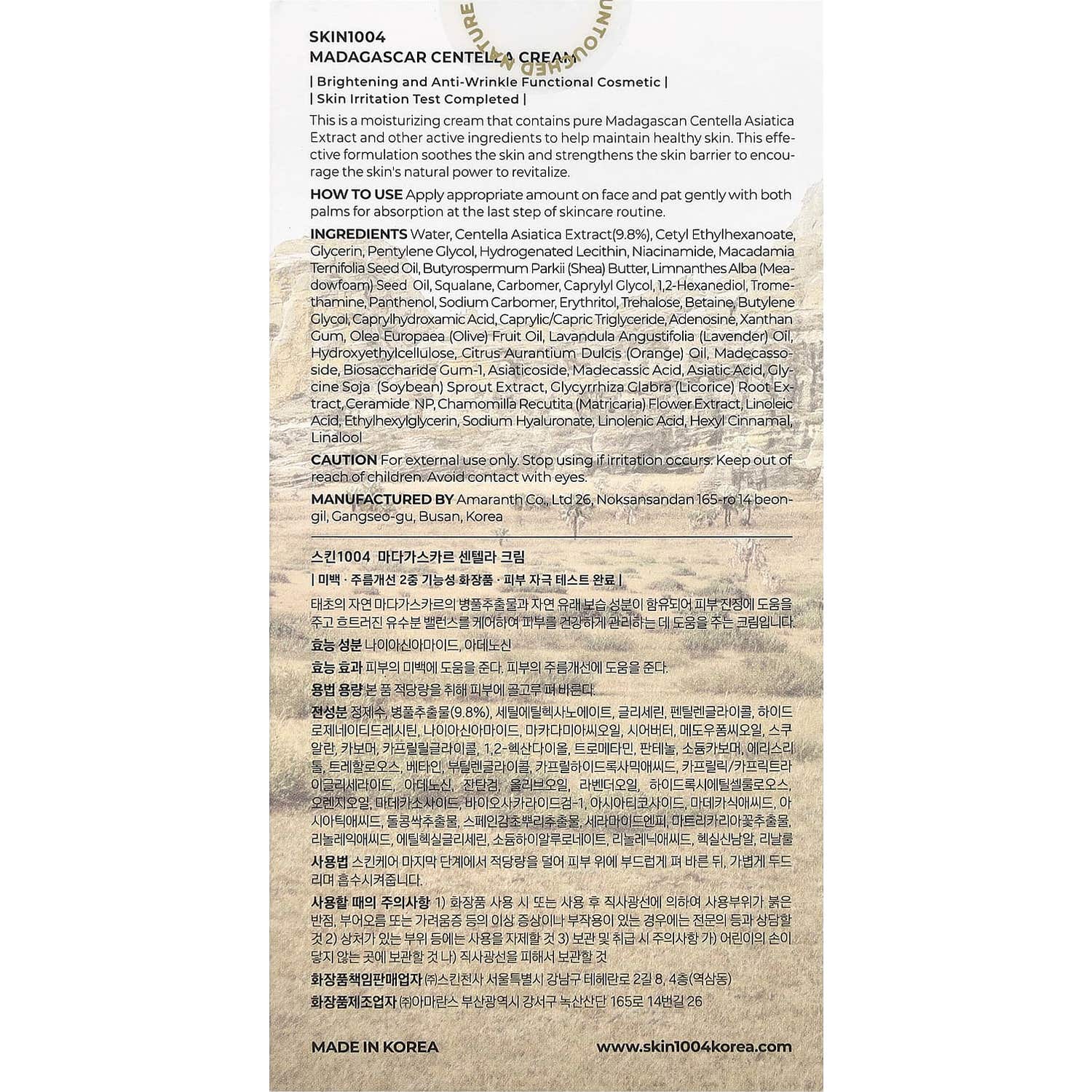 Skin1004 Madagascar Centella Cream 30ml est une crème de traitement conçue pour offrir une hydratation profonde et durable. Sa formule, qui inclut squalane et extrait de Centella asiatica, possède des propriétés qui apaisent et nourrissent la peau, fournissant un effet réparateur grâce à l'extrait de TECA.