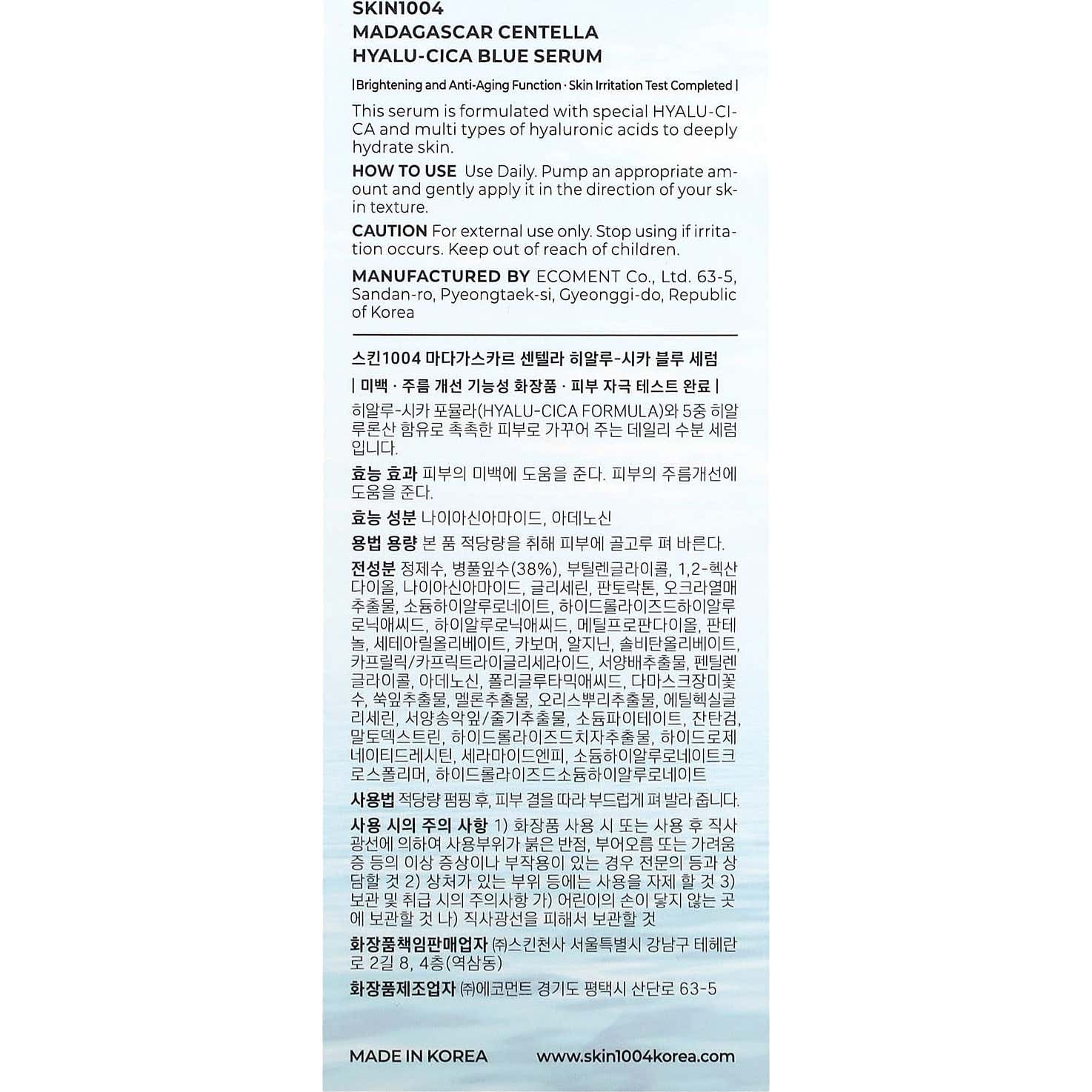 Skin1004 Madagascar Centella Hyalu-Cica Blue Serum est parfait pour ceux qui souhaitent un soin facial complet, car il n'hydrate pas seulement, mais aide également à rendre la peau plus radieuse et uniforme. De plus, c'est un produit végan et sans cruauté.