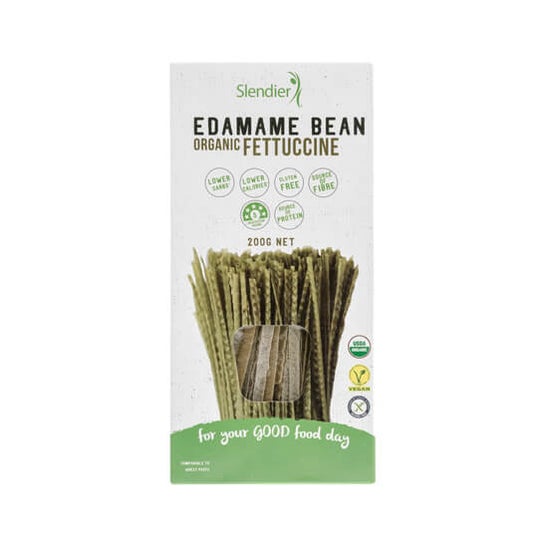 Pâtes fettuccine à base d'edamame biologique et d'eau. C'est un aliment sain, pauvre en glucides, riche en protéines, en fibres et en nutriments essentiels. Idéales pour les végétariens, les végétaliens, les personnes à faible teneur en glucides ou simplement pour ceux qui souhaitent une alternative plus saine aux pâtes conventionnelles.