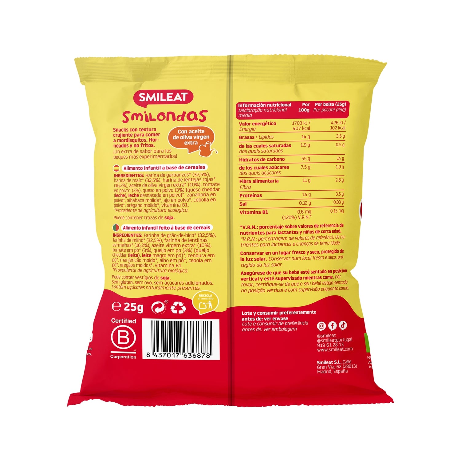Smileat Smilondas Snack Ecológico de Tomate y Queso 25g