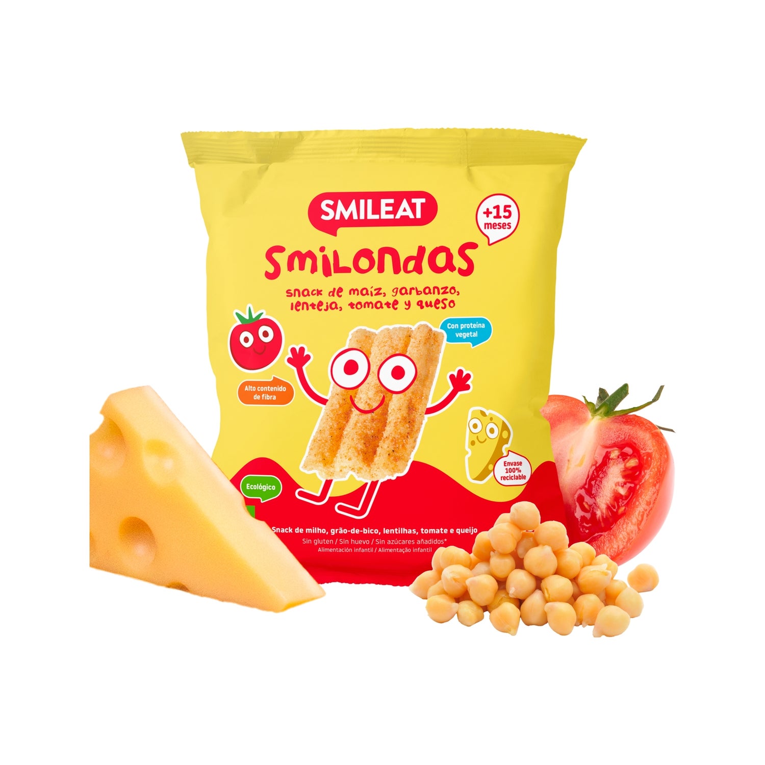 Smileat Smilondas Snack Écologique de Tomate et Fromage 25g est un snack sain, croustillant et écologique, élaboré à base de maïs, pois chiches, tomate et fromage. Parfait pour un en-cas sain entre les repas, tant pour les adultes que pour les enfants. De plus, il est présenté dans un emballage recyclable.