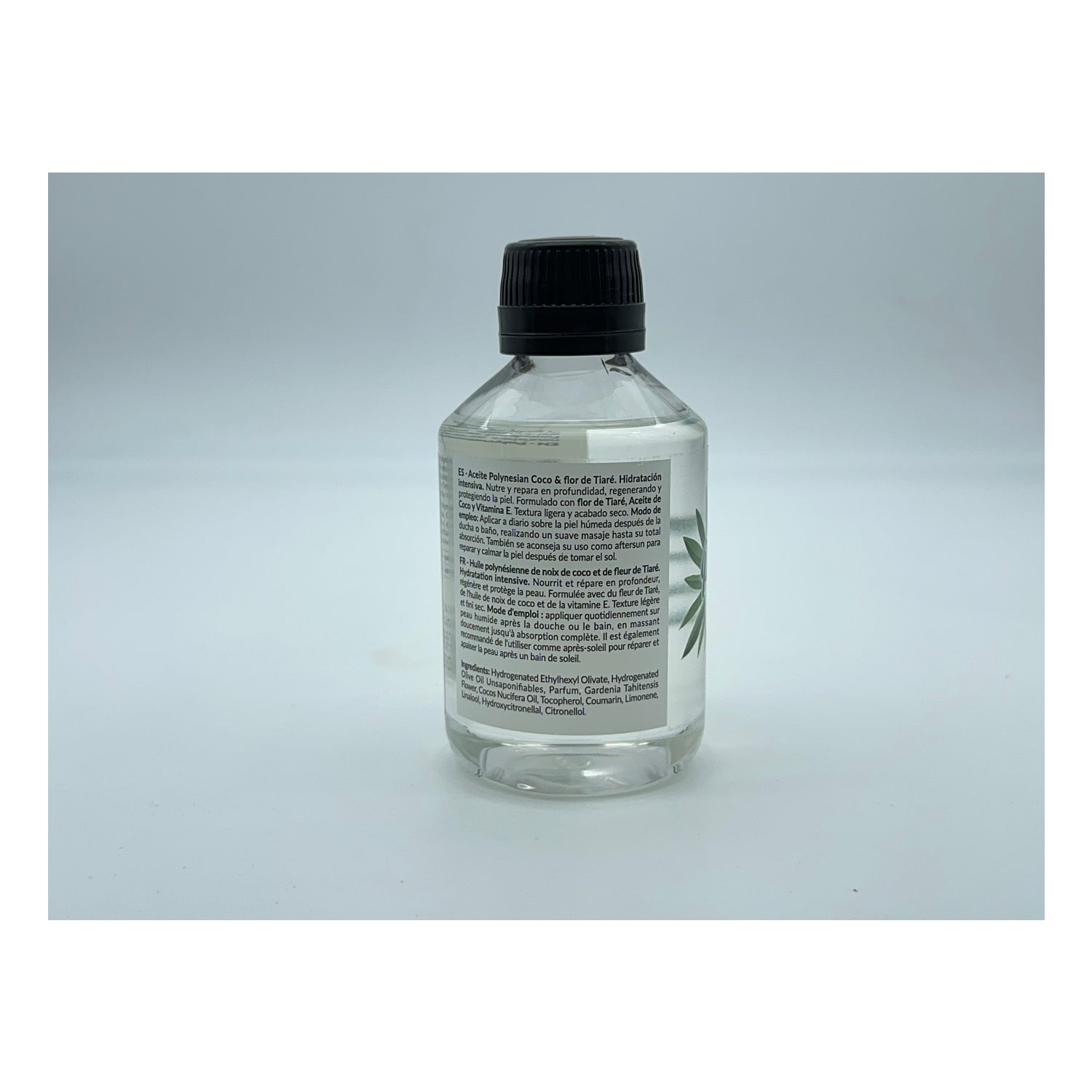 L'huile polynésienne de noix de coco et de monoï a une texture légère et offre de grandes propriétés nourrissantes et hydratantes pour réparer et protéger la peau, est enrichie en huile de coco, est riche en acides gras et en vitamine E qui aident également à nourrir et régénérer la peau en profondeur.