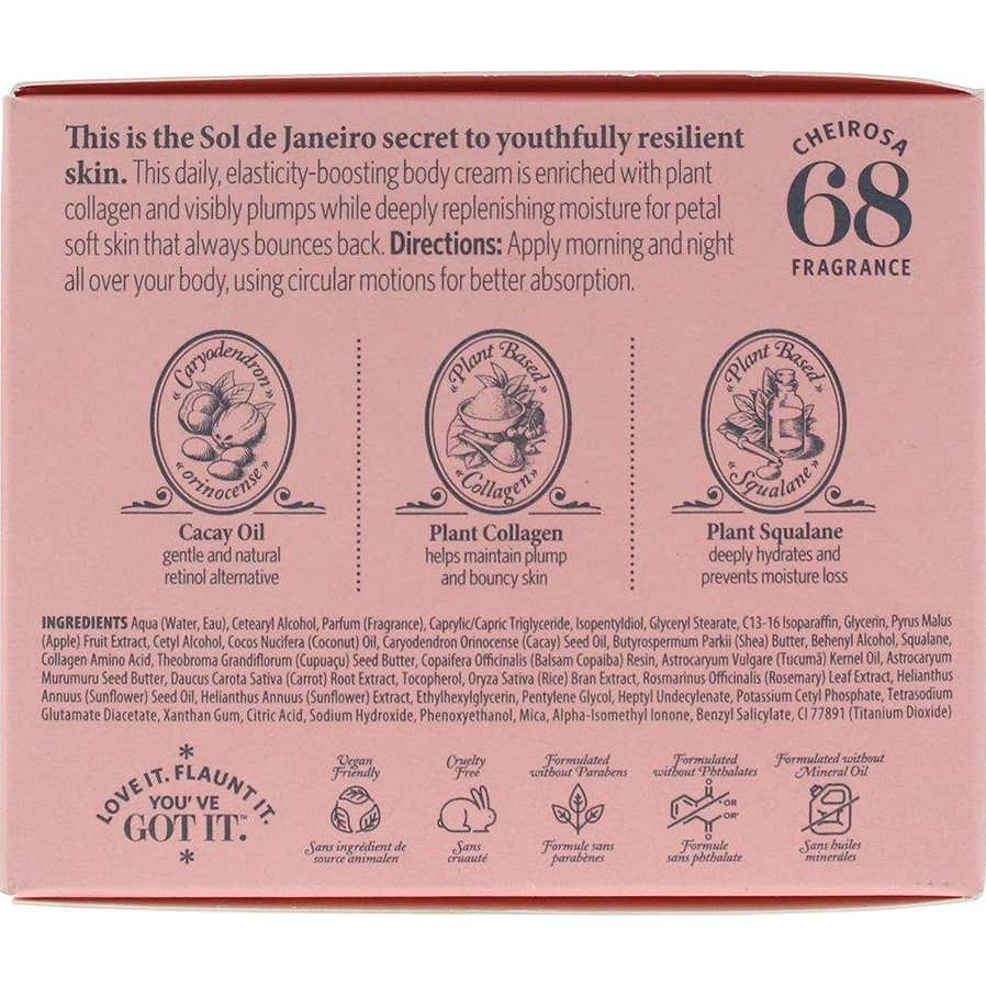 Sol de Janeiro Beija Flor Elasti Cream est une crème corporelle conçue pour fournir un soin complet de la peau, similaire à celui accordé au visage. Ce produit favorise une peau radieuse et bien entretenue, grâce à sa formule nutritive et élastique, cliniquement prouvée pour stimuler la production de collagène, un élément essentiel pour obtenir une peau visiblement ferme et revitalisée.