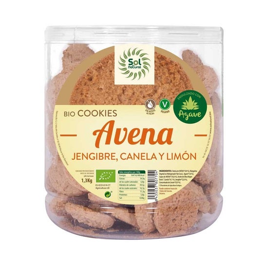 Biscuits à base de farine et de flocons d'avoine, de cannelle, de gingembre, de concentré de citron et sucrés au sirop d'agave, tous issus de l'agriculture biologique, qui sont idéaux pour savourer un moment de douceur à tout moment de la journée.