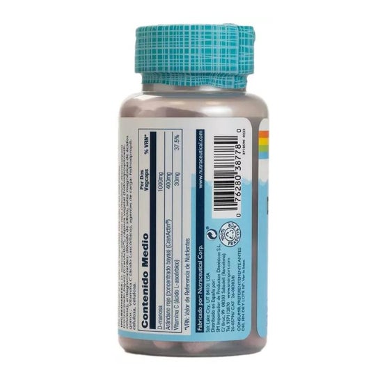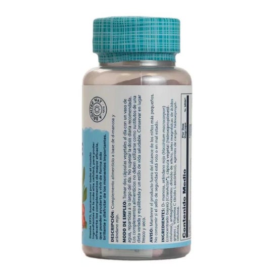 Complément alimentaire sous forme de capsules de cellulose végétale, spécialement conçu pour soutenir le fonctionnement normal des voies urinaires, grâce à son composé à base de canneberge américaine et de d-mannose. Il est entièrement compatible avec un régime végétarien et vegan.