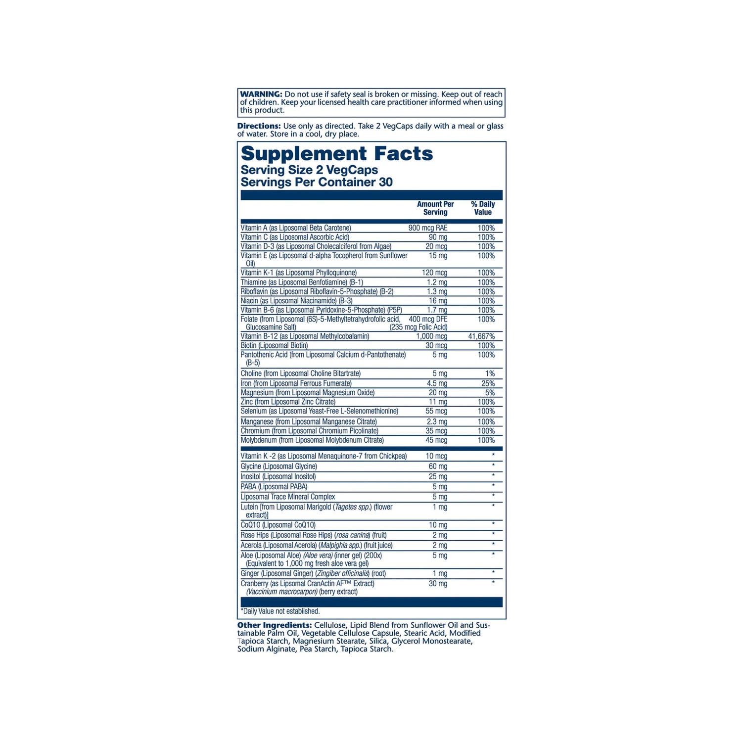 Solaray Liposomal Multivitamin Woman +50 60caps est un complément alimentaire qui aide à renforcer le système nerveux. Il est formulé avec de l'extrait de canneberge, de la vitamine C et d'autres nutriments qui aident à prolonger l'énergie et la vitalité. Il contribue également à renforcer le système immunitaire et à favoriser la synthèse du collagène naturel. Contient 60 gélules.