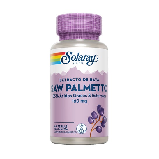 Solaray Saw Palmetto 60 pearls est un complément alimentaire riche en extrait de baies de sabal, une plante active qui a des effets bénéfiques sur la santé de la prostate et d'autres caractéristiques masculines.