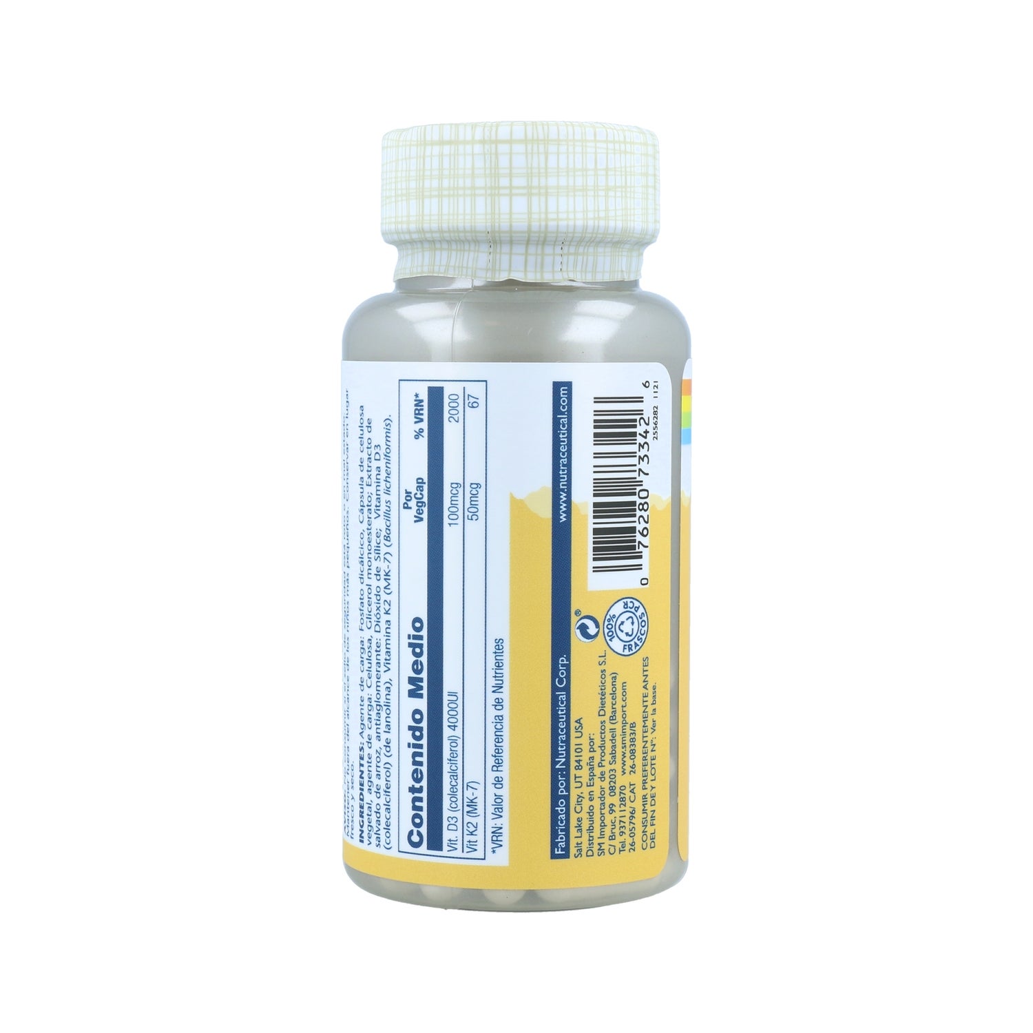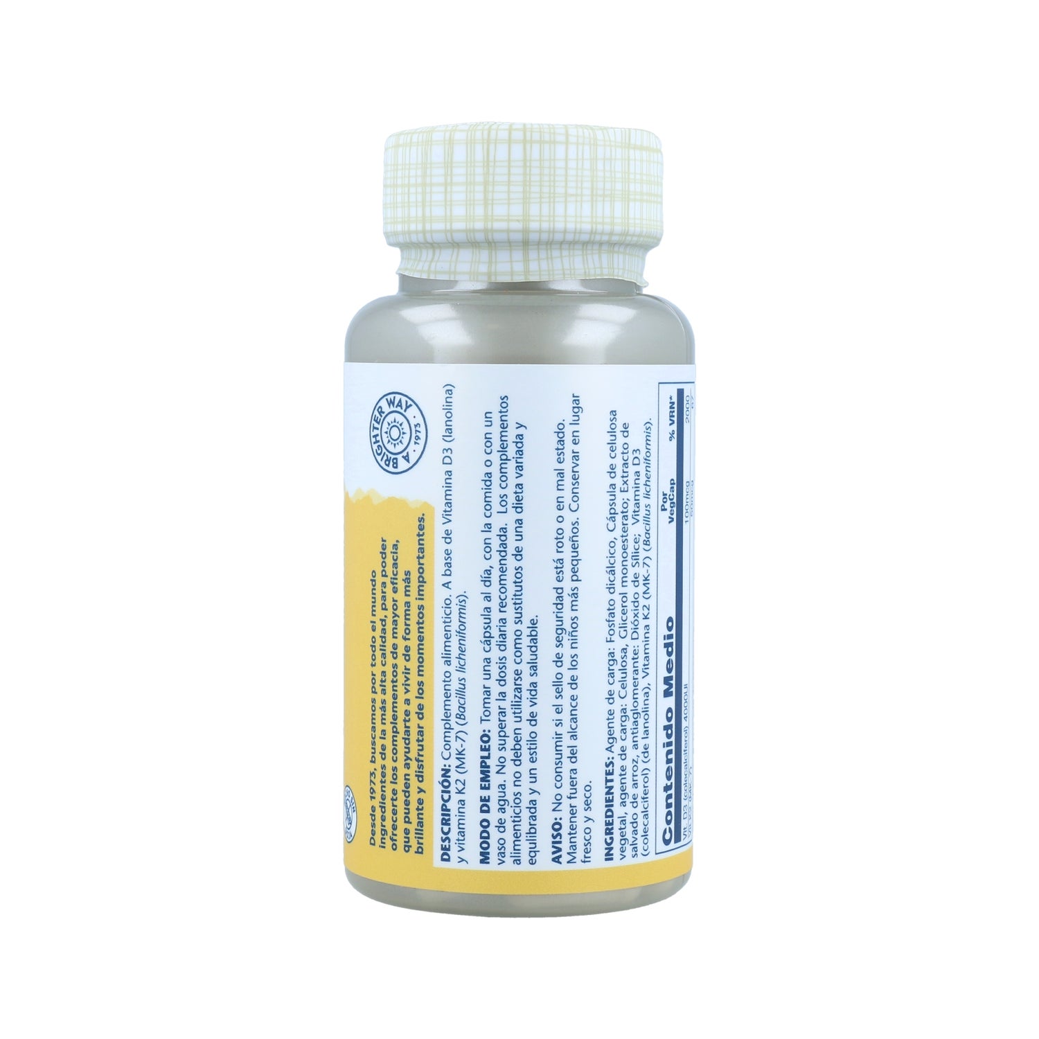 Solaray Vitamine D3 & K2 est un complément alimentaire dont la composition contribue au bon maintien des os, des dents et de la santé cardiovasculaire.