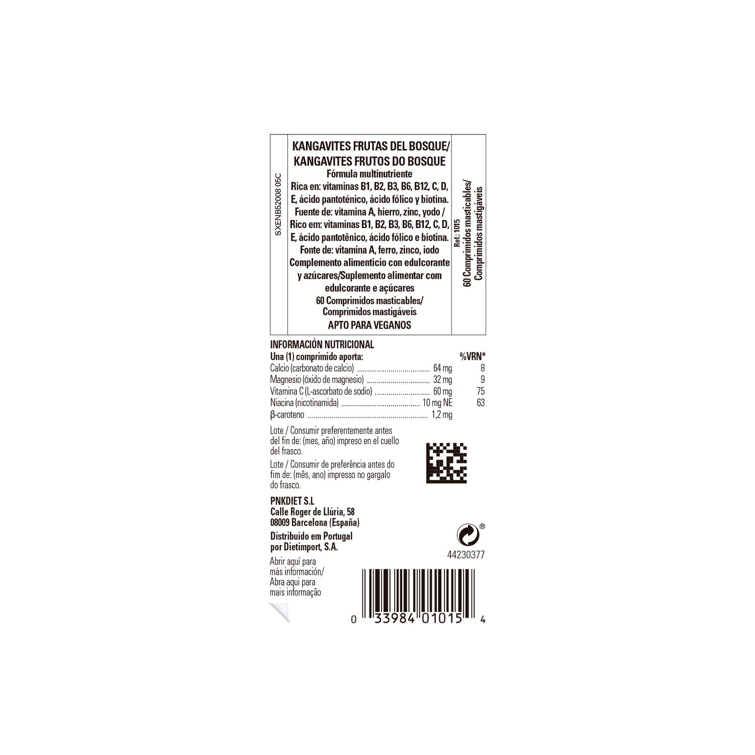 Complément alimentaire multivitaminé pour enfants en format à mâcher, élaboré à base de légumes et de fruits, tels que la poudre de carotte, la betterave rouge, la fraise, la pomme, le brocoli et l'abricot, qui contribue à promouvoir la bonne nutrition des enfants. Il ne contient ni sucre ni amidon. Il convient aux régimes végétariens et végétaliens.