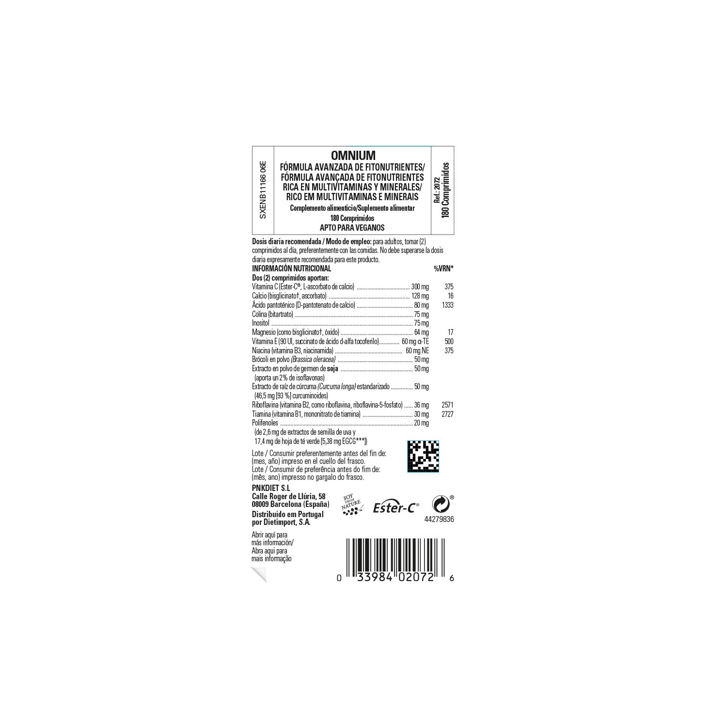Vitamine C (ascorbate de calcium, [Ester-C®]), Calcium (bisglycinate, ascorbate), Acide pantothénique (D-pantothénate de calcium), Choline (bitartrate), Inositol, Magnésium (oxyde, [Ester-Ccalcium), Choline (bitartrate), Inositol, Magnésium (oxyde, bisglycinate), Niacine (Vitamine B3, nicotinamide), Vitamine E (90 IU, D-alpha tocopheryl acid succinate), Bépoudre de chou, extrait standardisé de racine de curcuma (46,5 mg [93%] de curcuminoïdes), extrait de poudre de germes de soja (apportant 2% d'isoflavones), riboflavine, (vitamine B2, riboflavine, riboflavine-5'-phosphate), thiamine (vitamine B1, mononitrate de thiamine), polyphénols (extraits de feuilles et de graines de thé vert), vitamine B2, (vitamine B2, riboflavine, riboflavine-5'-phosphate), vitamine B2, (vitamine B2, riboflavine, riboflavine-5'-phosphate), thiamine (vitamine B1, mononitrate de thiamine). et extrait de pépins de raisin), complexe de bioflavonoïdes d'agrumes, acide alpha lipoïque, acide alpha lipoïque, acide alpha lipoïque, vitamine B1, mononitrate de thiamine.acide alpha-lipoïque, Coenzyme Q-10, Mélange de phosphatidyl (Phosphatidyl serine et Phosphatidyl choline), Quercétine déshydratée, Vitamine B6 (chlorhydrate de pyridoxine), Zinc (bisglycinate), Fer (bisglycinate), Bêta-carotène de source naturelle, Manganèse (bisglycinate), Cuivre (bisglycinate), Acide folique (acide thérothéroïque, chlorhydrate de pyridoxine), Fer (bisglycinate), Fer (bisglycinate), Vitamine B6 (chlorhydrate de pyridoxine), Manganèse (bisglycinate), Cuivre (bisglycinate), Vitamine Aacide folique (acide théroylmonoglutamique), Iode (iodure de potassium), Chrome (picolinate), D-Biotine, Vitamine B12 (cyanocobalamine), Sélénium (L-sélénométhionine), Vitamine K (phytoménadione), Mélange de caroténoïdes, Bore (acide borique, acide citrique, acide borique), Vitamine B12 (cyanocobalamine), Vitamine K (phytoménadione), Bore (acide borique, acide citrique).bore (acide borique, acide citrique), Vitamine D (200 UI D2 ergocalciférol). Agents de charge : cellulose microcristalline, amidon de pois, alginate, phosphate dicalcique, acide citrique, maltodextrine, mannitol ; Antiagglomérants : stéarate de magnésium végétal, dioxyde de silicium, acide stéarique végétal ; Colorants : anthocyanes [issus de la peau du raisin (sulfites)], dioxyde de titane ; Agents d'enrobage : hydroxypropylcellulose, glycérine végétale (issue d'huile de palmiste et d'huile de coco) ; Gomme de cellulose réticulée.