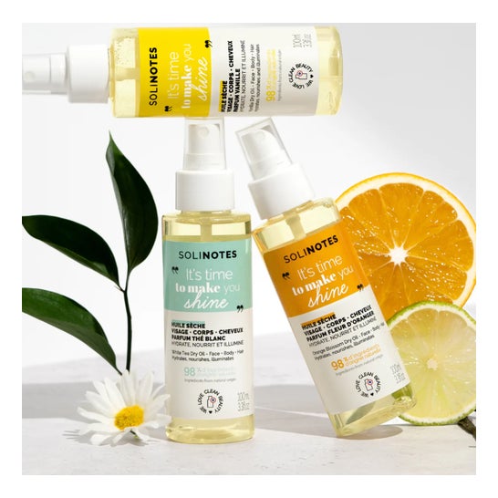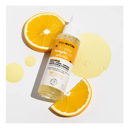 Solinotes Huile Sèche Fleur d'Oranger 100ml est une huile sèche multifonction à la texture légère et non grasse. Enrichie en extrait de roucou, reconnue pour ses vertus hydratantes et apaisantes, elle :