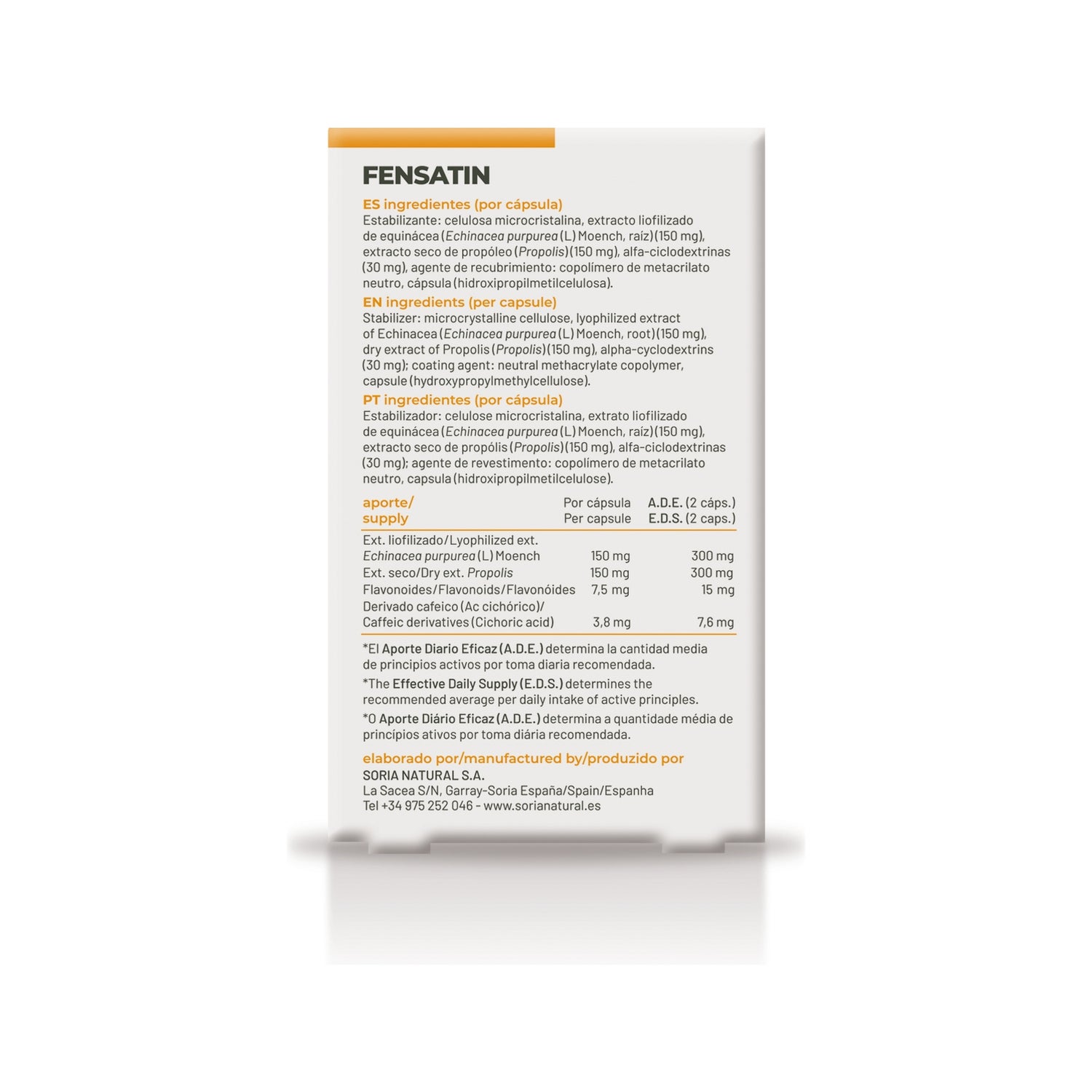 Soria Natural 13-C Fensatin 30caps est un complément alimentaire qui associe la propolis et l'échinacée issues de cultures propres pour améliorer le fonctionnement du système immunitaire.
