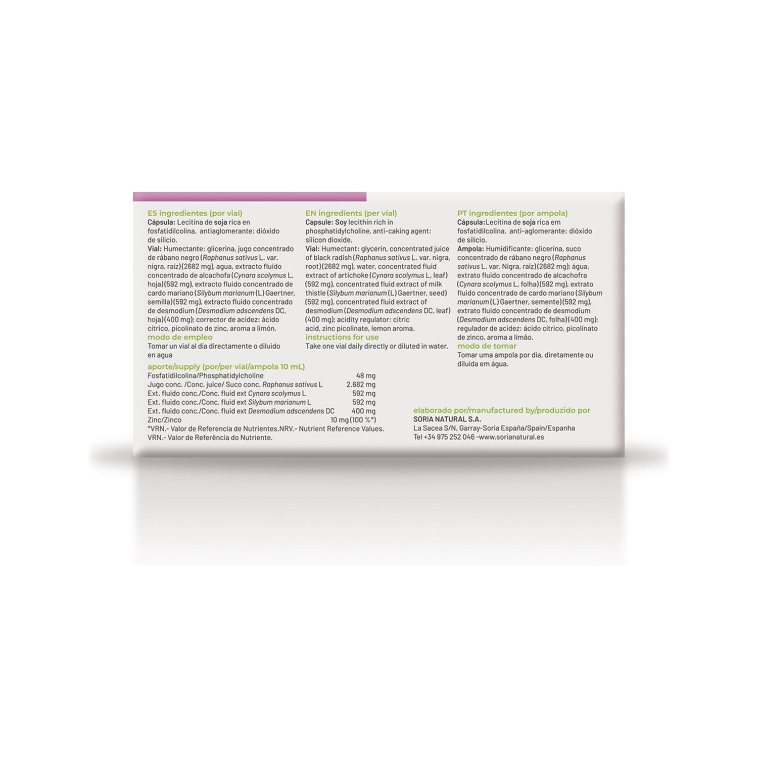 Complément alimentaire naturel à base de radis noir, d'artichaut et de chardon-marie qui aide à protéger les cellules du foie. Il stimule également l'élimination des toxines du corps par ses processus naturels. Contribue au métabolisme des acides gras dans l'organisme, contrôlant ainsi les taux de triglycérides et de cholestérol dans le sang.