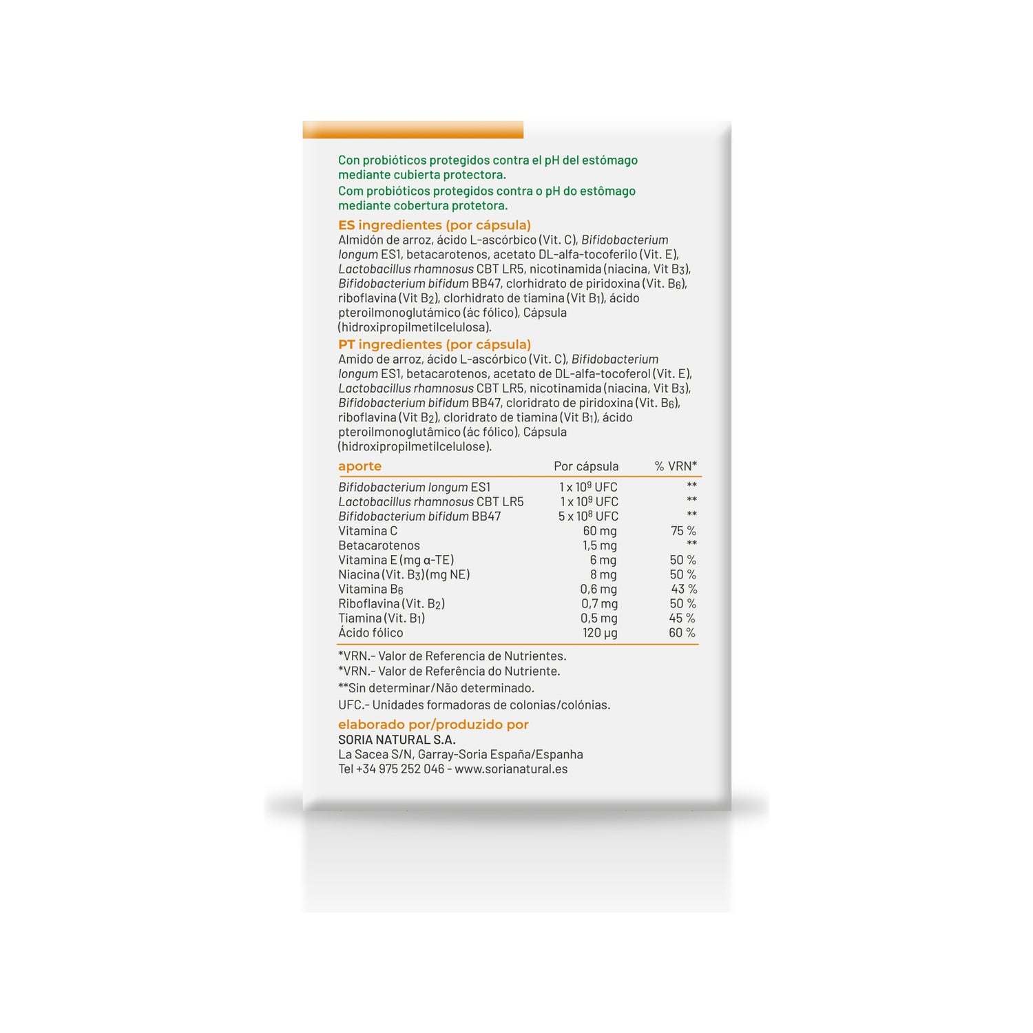 Complément alimentaire formulé avec des probiotiques. Contient la souche bactérienne Bifidobacterium longum ES1. Contribue au bon fonctionnement du système digestif. Indiqué en cas d'inflammation intestinale ou de maladie cœliaque. Ne convient pas aux personnes allergiques aux protéines du lait, aux femmes enceintes ou allaitantes.