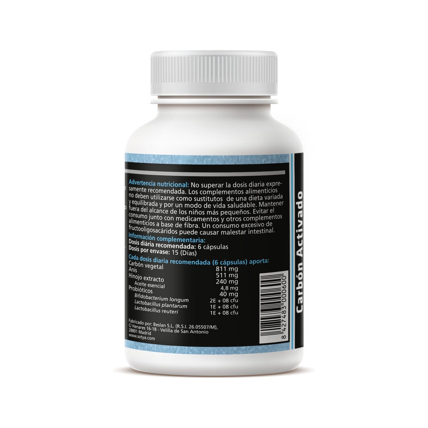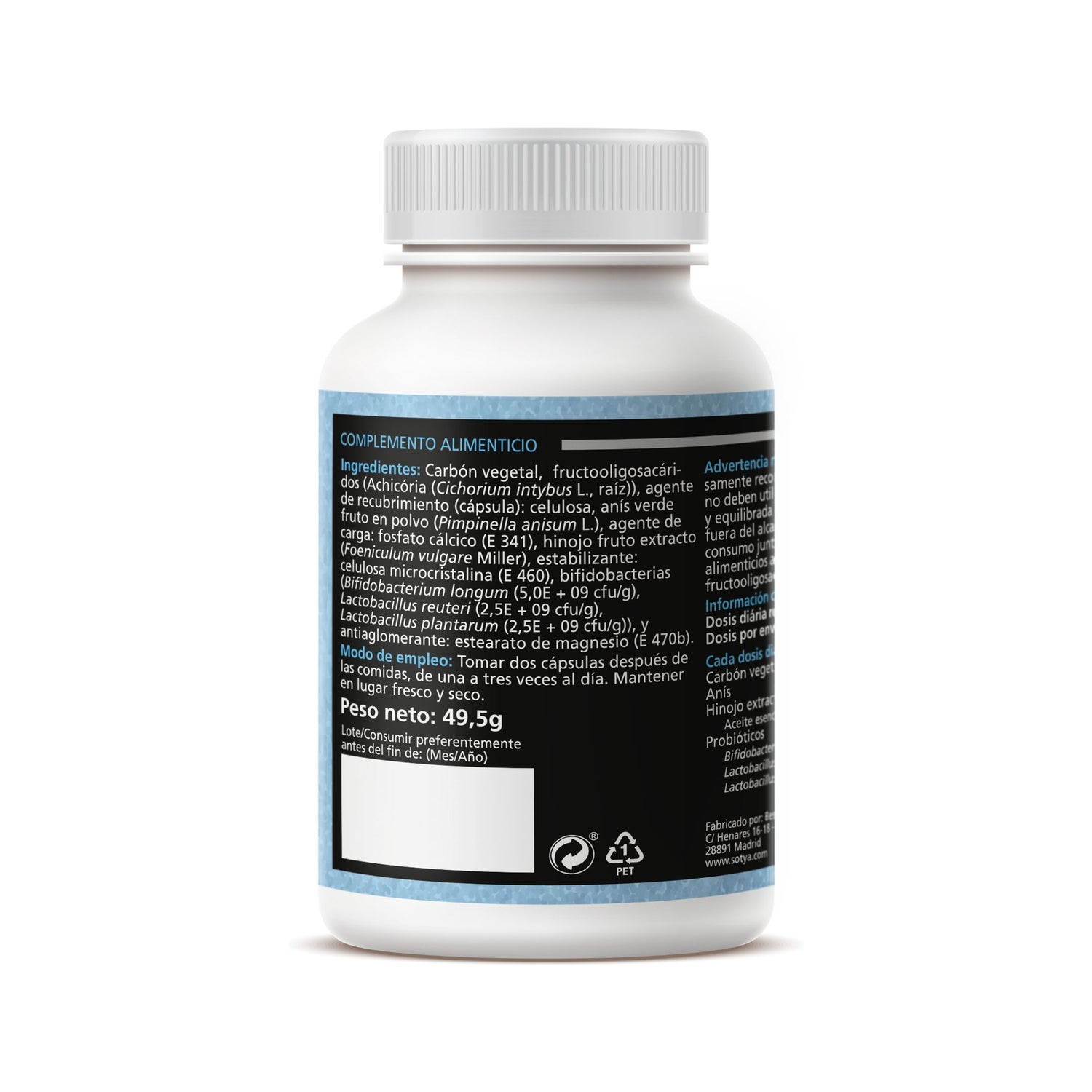 Sotya Charbon Actif Avec Probiotiques 90 Capsules est un complément alimentaire dont la formule aide à réduire les gaz après les repas.