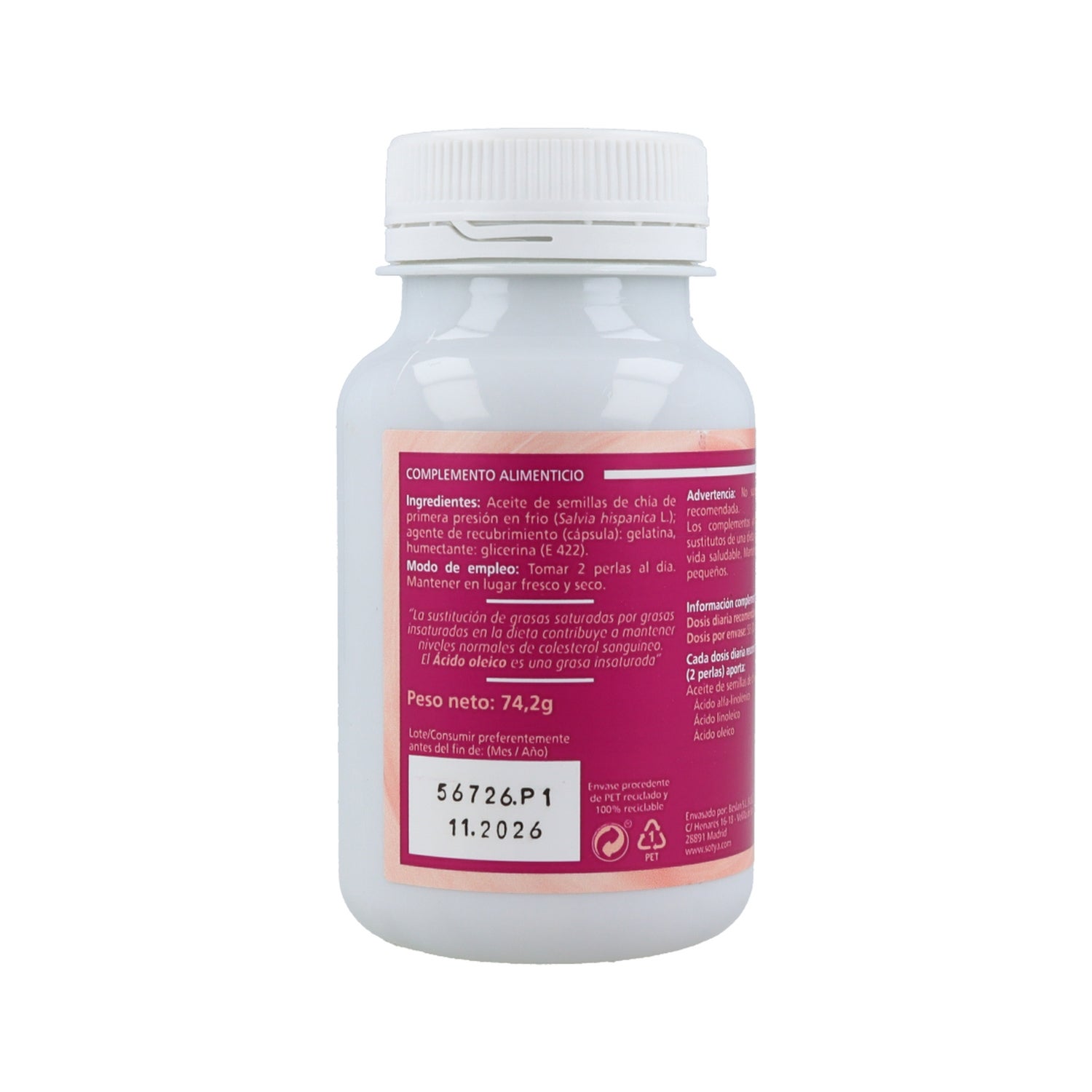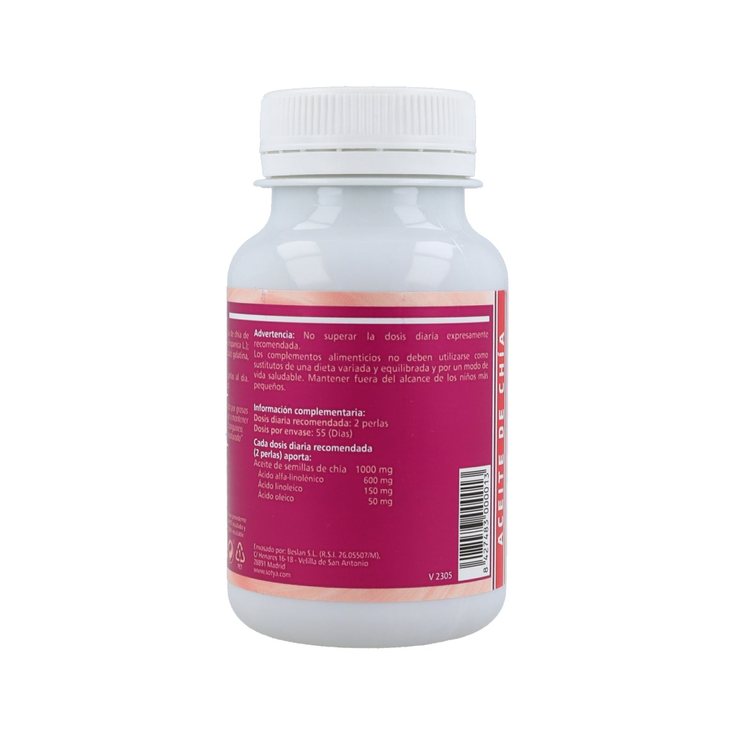 Chaque perle apporte : huile de graines de Chia 2000mg, acide alpha-linolénique 1200mg, acide linoléique 300mg, acide oléique 100mg.