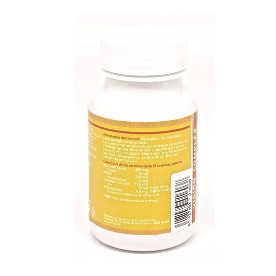 Complément alimentaire Sotya en format de 60 capsules, la composition contient un mélange d'extraits naturels dont : fleur de souci, lutéine, myrtilus, anthocyanidines, gluconate de zinc, zinc et bêta-carotène. La formule aide à maintenir et à soigner la vision.