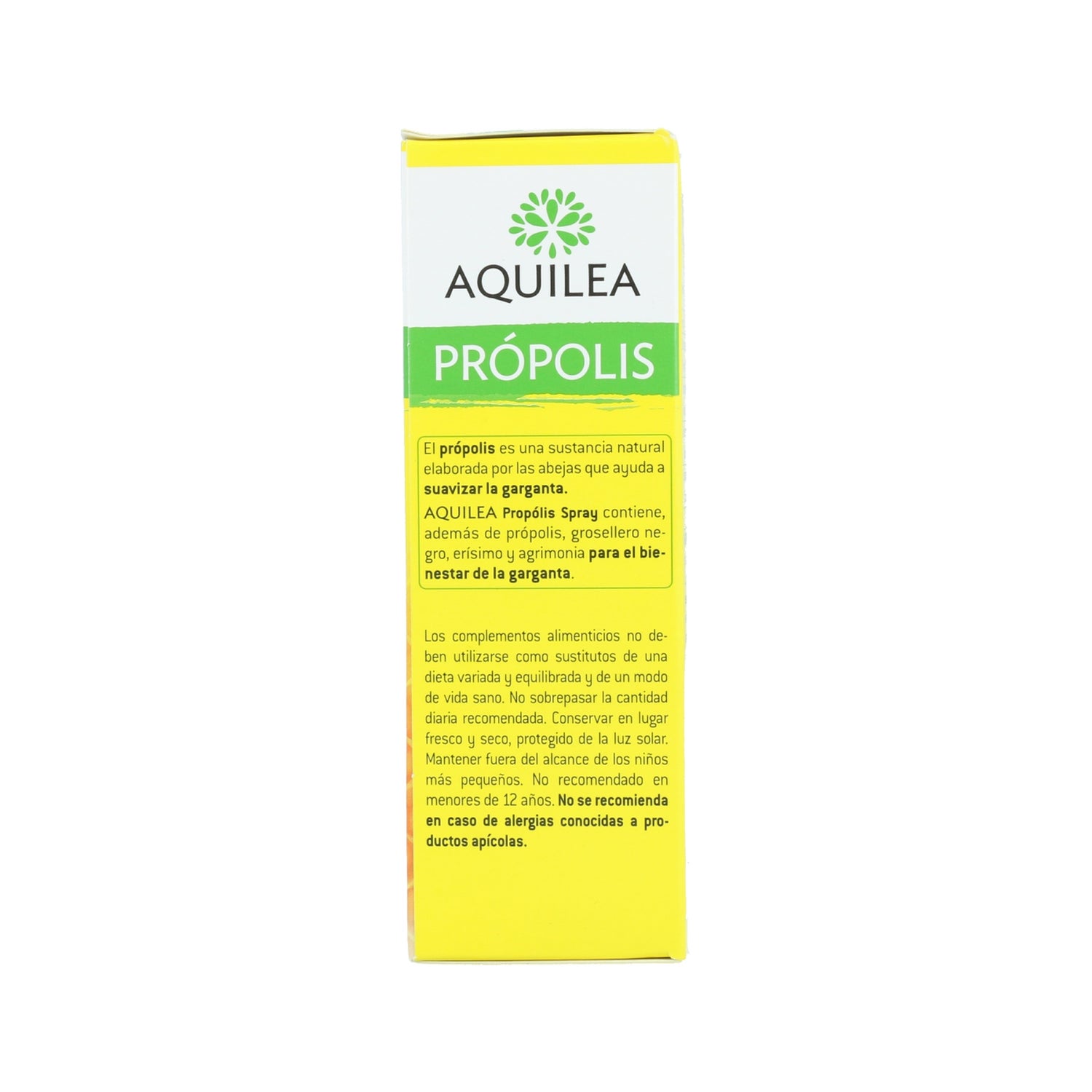 Aquilea propolis spray 50ml est un complément alimentaire présenté dans un spray spécialement préparé pour offrir à votre corps les propriétés naturelles de la propolis. Sa formule aide à stimuler le système de défense naturel, car elle contient une forte concentration de propolis, d'aigremoine et d'érissimo (herbe de chanteur), des plantes traditionnellement utilisées pour les affections respiratoires et de la gorge.