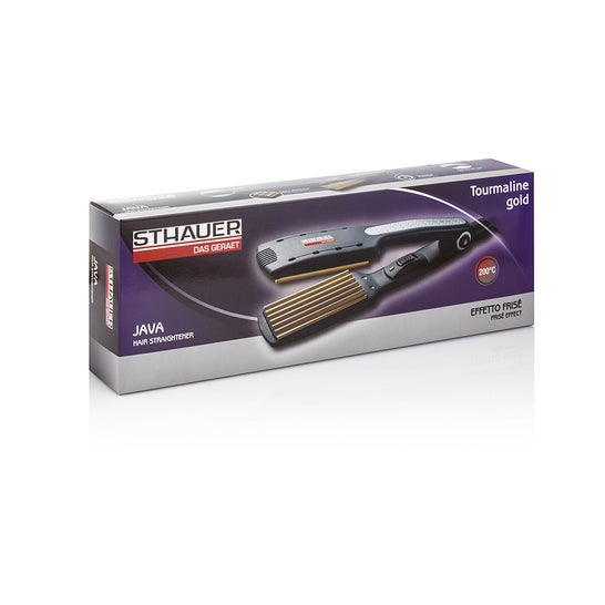 La Sthauer Plancha Java Cerámica Efecto Frise est l'outil idéal pour ceux qui cherchent à donner du volume et de la texture aux cheveux avec une finition professionnelle à la maison. Son design comprend :