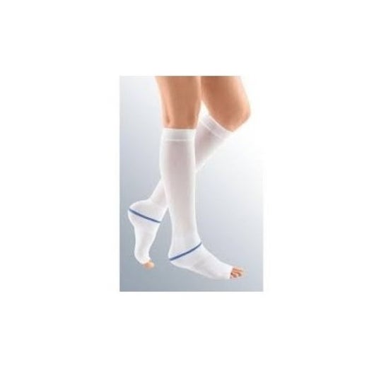 Struva 23mmHg Chaussette Blanche Taille 4 1 Paire est une chaussette clinique conçue pour fournir une compression post-opératoire et prévenir la thrombose veineuse profonde. Avec une compression modérée de 23 mmHg, ce produit favorise le retour veineux, en particulier chez les personnes ayant subi des interventions chirurgicales ou nécessitant une immobilisation, aidant à prévenir les œdèmes et les hématomes. La chaussette dispose d'un gradient de compression descendant qui stimule la circulation depuis la cheville jusqu'en haut de la jambe, ce qui accélère la récupération et réduit le risque de complications vasculaires. Parmi ses principales caractéristiques, on trouve une pointe ouverte pour améliorer l'hygiène et faciliter l'inspection de l'état circulatoire, une bande supérieure en silicone qui assure un ajustement ferme et un talon renforcé pour une plus grande durabilité. Ce design facilite son placement et son utilisation quotidienne, offrant un soutien confortable et fiable tant pour les patients que pour les professionnels de la santé.