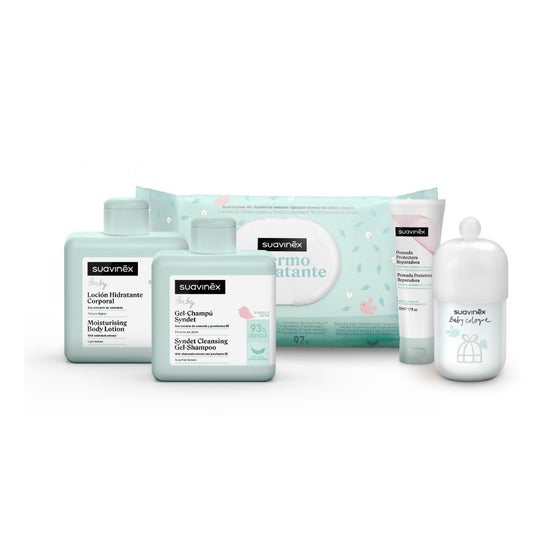 Suavinex Baby Cosmetic Bag Pink 1pc est un ensemble de soins complet pour la peau de bébé dès le premier jour. Il comprend des lingettes, un shampoing-gel syndet, une lotion hydratante pour le corps, une crème intensive pour les couches et de l'eau de Cologne pour bébé. Les lingettes Suavinex Dermo-moisturising sont douces et hydratantes, idéales pour nettoyer la peau de bébé en respectant son pH et en évitant les irritations. Suavinex Syndet Gel-Shampooing nettoie en douceur la peau et les cheveux de bébé, en maintenant leur équilibre naturel et en leur apportant douceur et hydratation. Suavinex Lotion Corporelle Hydratante hydrate en profondeur la peau de bébé, la maintient douce et lisse, avec des propriétés apaisantes et purifiantes. Suavinex Intensive Nappy Ointment aide à prévenir et à restaurer la barrière cutanée dans la zone des couches, en protégeant et en hydratant la peau. Suavinex Baby Cologne est un parfum à faible teneur en alcool, à la senteur fruitée et citronnée, idéal pour rafraîchir la peau de bébé après le bain. Convient aux nouveau-nés et aux peaux sensibles.