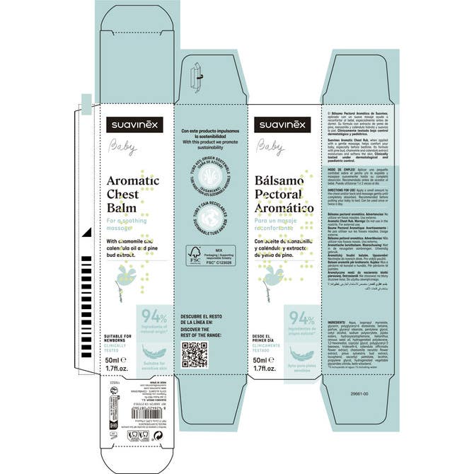 Suavinex Baume Pectoral Aromatique 50 ml est un produit conçu pour offrir un massage réconfortant qui contribue au bien-être du bébé. Ce baume est composé à 95% d'ingrédients d'origine naturelle, ce qui le rend idéal pour les peaux sensibles et adapté dès le premier jour de vie.