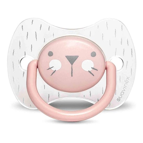 Suavinex Chupeta Silicone Premium 6-18m Bigodes Rose 1 Unité. *La couleur et le design du produit peuvent varier en fonction de la disponibilité.
