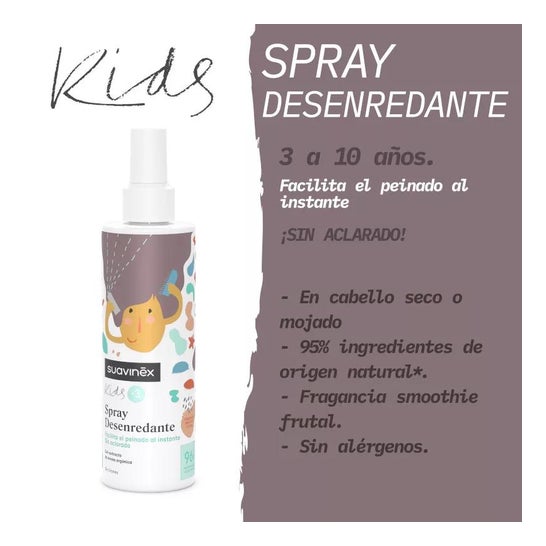 Suavinex Kids Spray Démêlant 250ml est un spray qui aide à démêler les cheveux des enfants à partir de 3 ans. Il est également formulé pour faciliter le peignage instantané, aussi bien sur cheveux secs que mouillés. Contient 250ml.