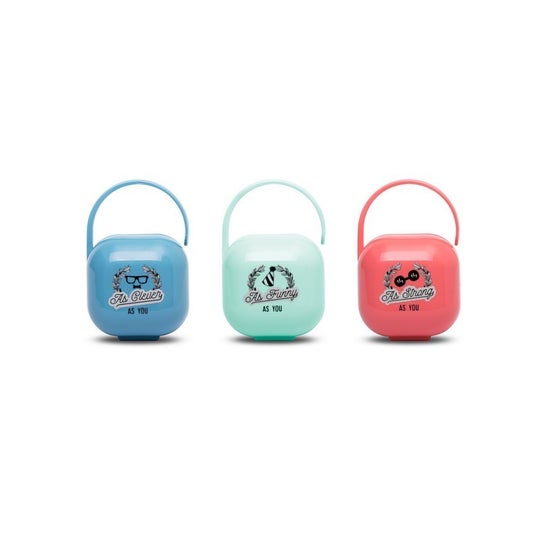 Porte-sucette qui permet de ranger jusqu'à deux sucettes. Il possède une poignée flexible spécialement conçue pour pouvoir être accroché, confortablement et en toute sécurité, au chariot du bébé. Il est disponible en plusieurs couleurs.