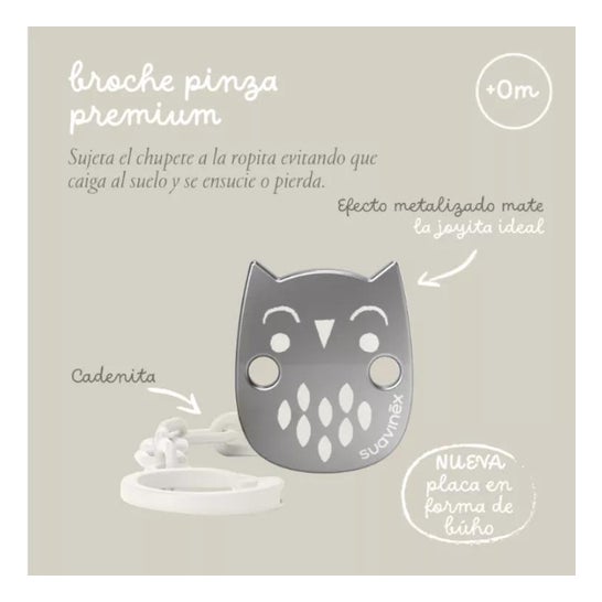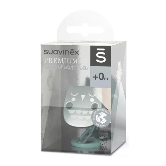Suavinex Premium Bonhomia Cadenita Hibou Vert +0m 1ud est un accessoire élégant pour bébés. Cette pince, avec une finition métallique mate et un design en forme de hibou, fait partie de la collection Bonhomia de Suavinex.