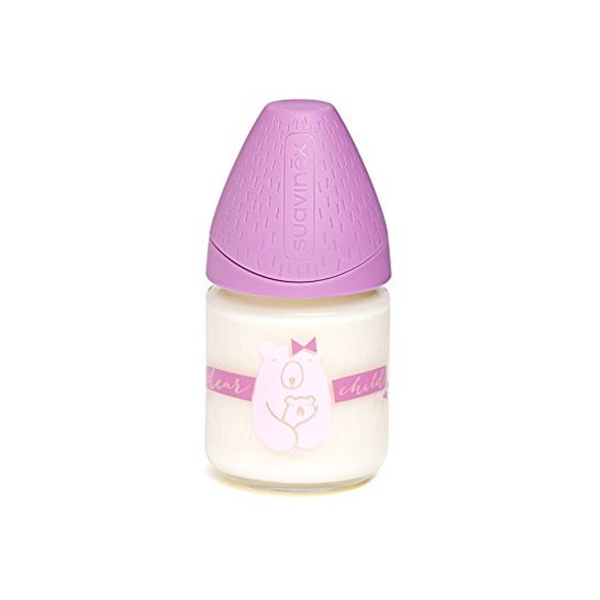 Flacon en verre d'une capacité de 120ml et tétine ronde en silicone avec technologie rotative qui permet de doser le débit de liquide, en obtenant une aspiration correcte dès le premier jour. Grâce à ses matériaux, il peut être utilisé pour les liquides chauds et froids. Il est également décoré de motifs amusants pour les enfants. *La couleur et le design du produit peuvent varier en fonction de la disponibilité.