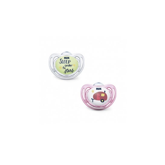 Sucettes anatomiques en silicone au design Hello Adventure pour les bébés de 6 à 18 mois. Composé d'une tétine anatomique qui s'adapte à la bouche du bébé et l'aide à apprendre à téter. Format aéré, léger et respectueux de la peau. Le bouclier à trous et la tétine de la sucette sont tous deux dotés de systèmes de ventilation qui améliorent la circulation de l'air et facilitent la succion et la respiration, évitant ainsi les rougeurs et permettant également de voir le sourire du bébé. Disque ou écran de protection de la sucette, qui doit être suffisamment grand pour réduire la probabilité qu'elle soit avalée. Respecte le développement naturel du palais, des dents et des gencives du bébé, même lorsque la sucette est placée à l'envers dans la bouche de votre bébé. Non marquant, résistant, insipide et inodore et sans BPA ou bisphénol A ; un composé chimique utilisé pour fabriquer des plastiques durs, très dangereux car il a été démontré que même de petites quantités de ce produit chimique peuvent causer de graves problèmes de reproduction. Stériliser, laver à la main ou au lave-vaisselle. Livré en 2 pièces.. ✓ La couleur et le design peuvent varier selon la disponibilité.