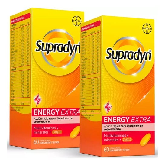 Supradyn Pack Energy Extra 2x60 comprimés est un complément alimentaire spécialement conçu pour aider à combattre la fatigue et couvrir d'éventuelles carences nutritionnelles.