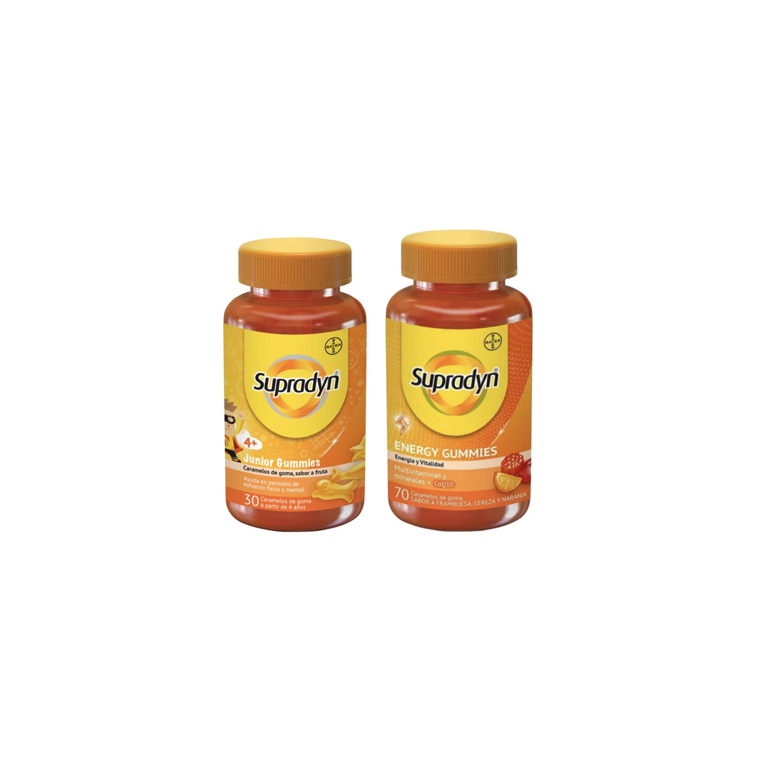 Supradyn Pack Famille Junior Gummies + Gummies Adultes est un pack composé de 2 compléments alimentaires pour adultes et enfants.