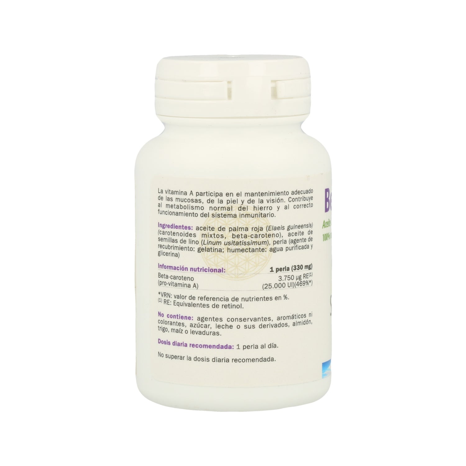 Pro-vitamine A (25000 Ui), alpha-carotène (7440 Μg), bêta-carotène (3750 Μg), complexe de caroténoïdes mixtes (155 Mg), gamma-carotène (116 Μg), lycopène (34 Μg), gélatine, eau purifiée, glycérine, huile de lin.