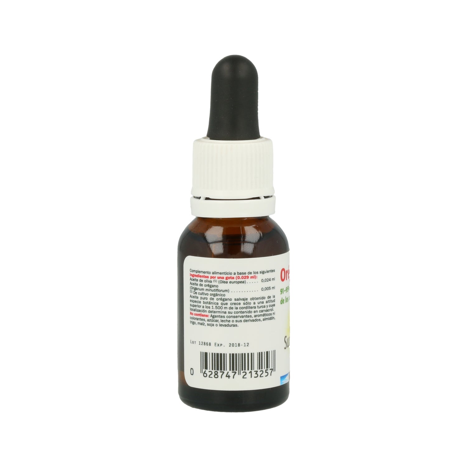 Sura Vitasan Oregano Oil 15ml est un complément alimentaire à base d'huile d'origan qui renforce le système immunitaire. Il est utile contre les virus et les bactéries, les rhumes et même les problèmes gastro-intestinaux. Il est recommandé de prendre 3 gouttes avec un liquide, de les garder sous la langue pendant quelques minutes ou de se gargariser, puis d'avaler.