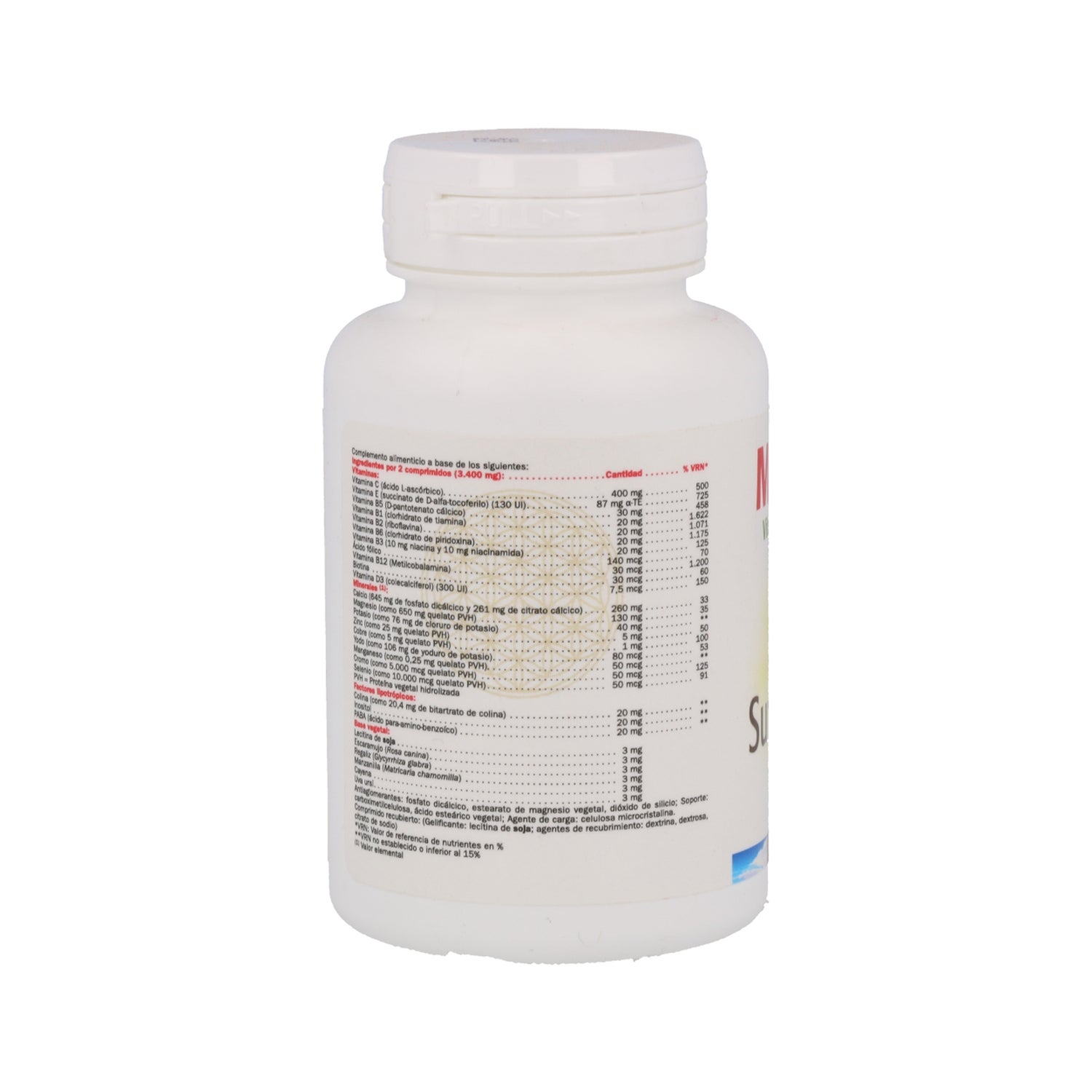 Composé de 13 vitamines, 9 minéraux et de facteurs lipotropes (choline, inositol et PABA) dans une base végétale pour une meilleure assimilation des nutriments. Il s'agit d'une formule très complète de 26 ingrédients qui ont été inclus dans leurs formes les plus actives et biodisponibles, ainsi que pour améliorer les différentes fonctions de l'organisme.