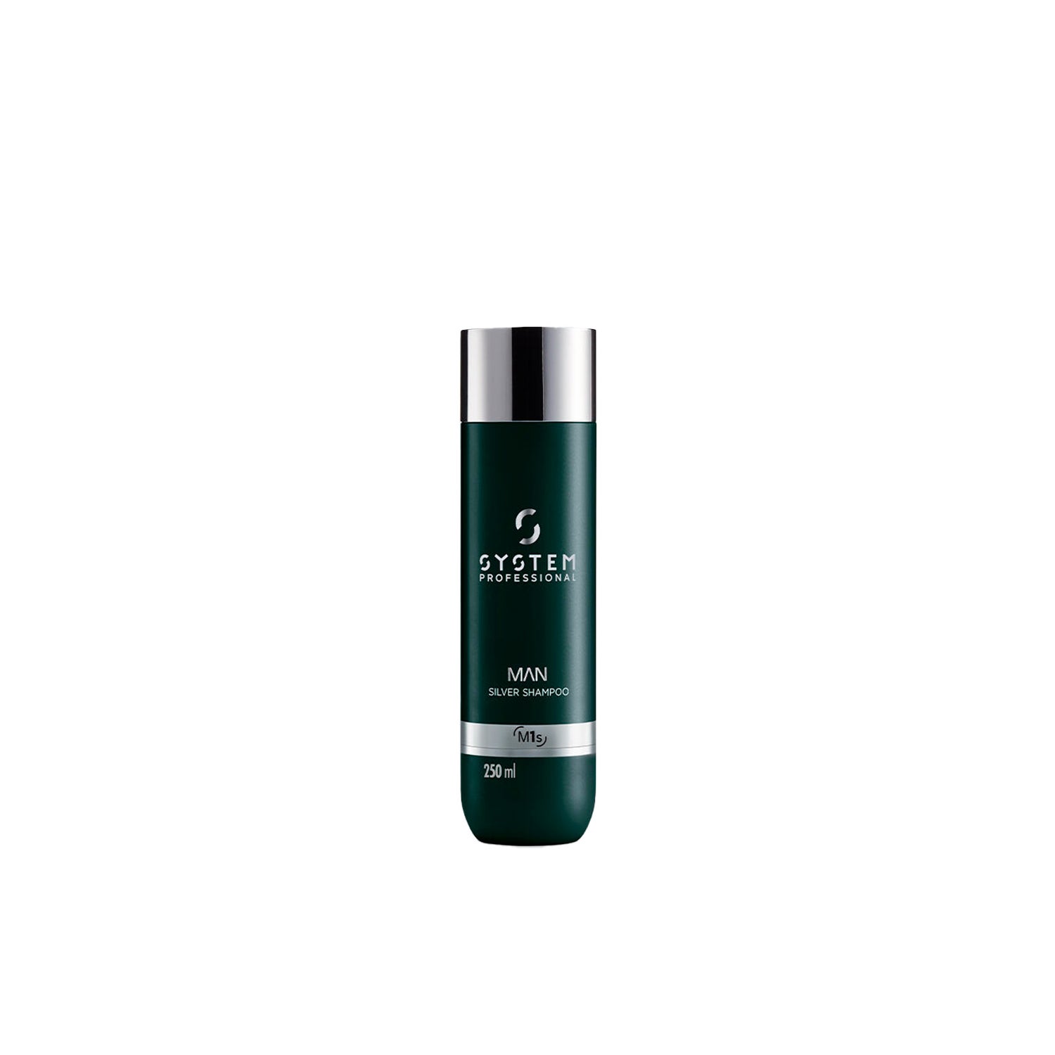System Professional Man Silver Shampoo M1S 250ml est un shampooing spécialement formulé pour le soin des cheveux blancs et gris. Ce produit se présente comme un traitement de nettoyage utilisé en salon et est conçu pour :