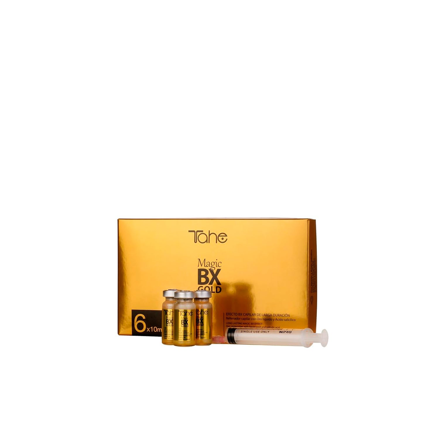 Tahe Magic BX Gold Traitement Redensifiant 6x10ml est un traitement concentré conçu spécifiquement pour cheveux épais et abîmés. Cet élixir capillaire est enrichi en or liquide et en acide salicylique, ce qui lui confère des propriétés réparatrices en profondeur.