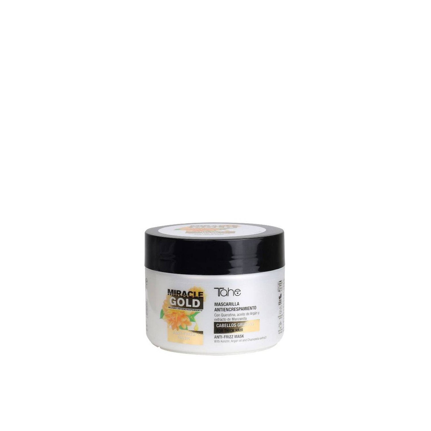 Masque Antifrizz Tahe Miracle Gold pour Cheveux Épais de 300 ml est un traitement conçu spécifiquement pour contrôler les cheveux épais et frisés. Ce masque agit en disciplinant la fibre capillaire, offrant une finition plus douce et plus maniable.