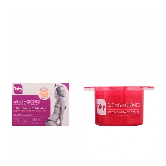 Taky Sensations Cire Divine Corporelle 400g est un produit conçu pour faciliter l'épilation. Cette cire professionnelle, présentée dans un seau de 400 grammes, se distingue par son efficacité élevée. Son arôme de fruits rouges apporte une expérience sensorielle agréable pendant son utilisation.
