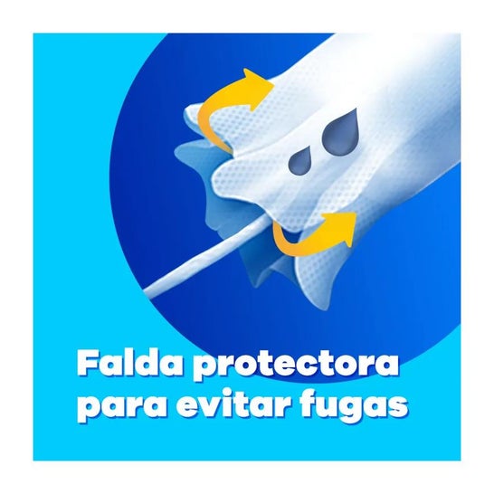 Des tampons qui remplacent les serviettes hygiéniques et assurent un plus grand confort. Ils contiennent un applicateur rétractable qui permet de les insérer facilement. De plus, il absorbe suffisamment pour protéger contre les fuites et l'humidité pendant 2 heures.