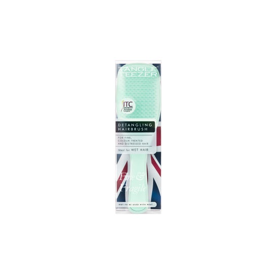 Peigne démêlant, couleur vert menthe. Indiqué pour un usage quotidien, il s'utilise sur cheveux humides, car cela favorise l'application de produits cosmétiques tels que :