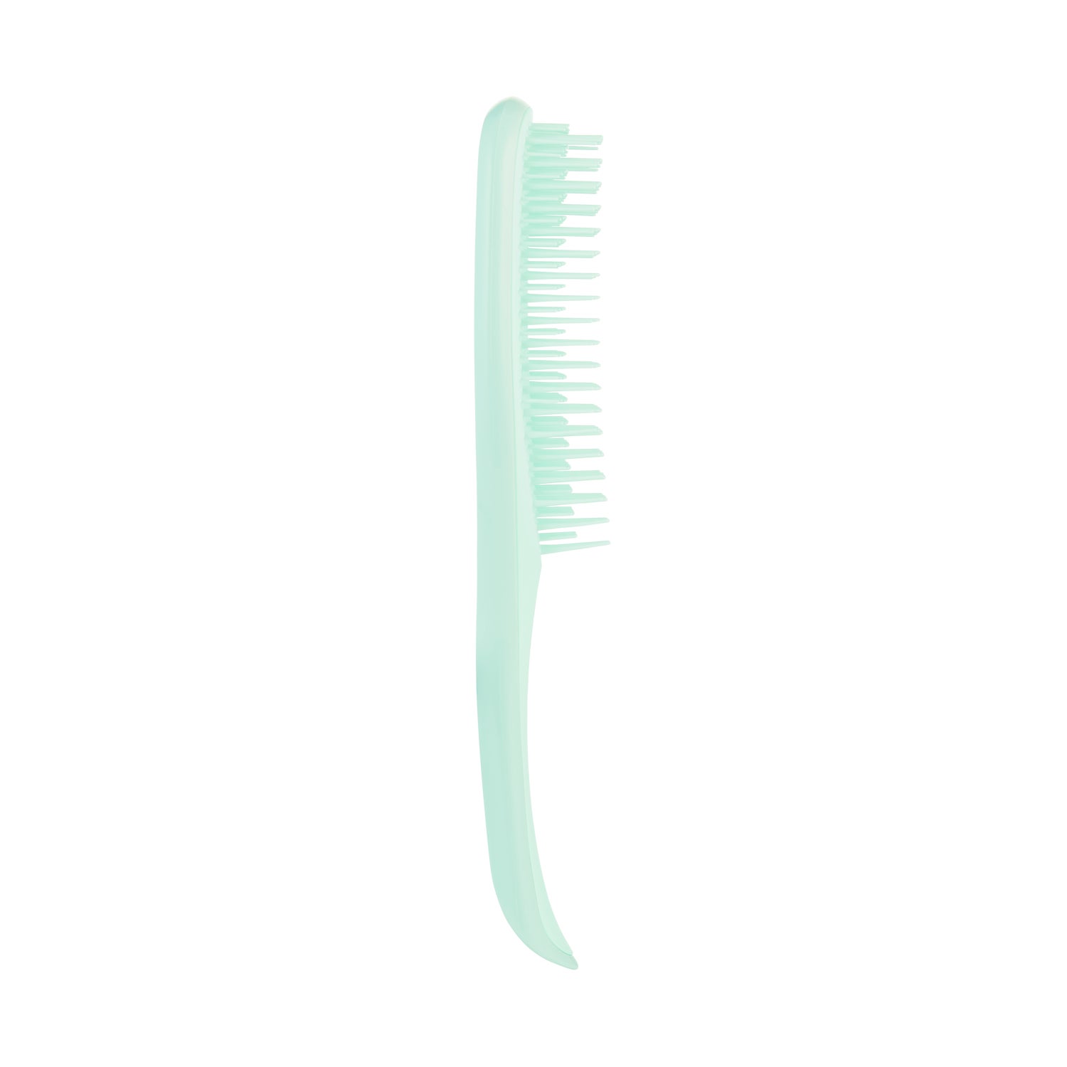 Brosse démêlante pour cheveux, couleur vert menthe. Adapté à un usage quotidien, il se manipule avec une tête humide, car il favorise l'application de produits cosmétiques tels que les shampooings, les masques ou les crèmes. Disposés en deux couches de 325 poils de tailles différentes, qui s'adaptent, adoucissent, lissent et facilitent le peignage. Il est doté d'une poignée ergonomique et facile à manier.