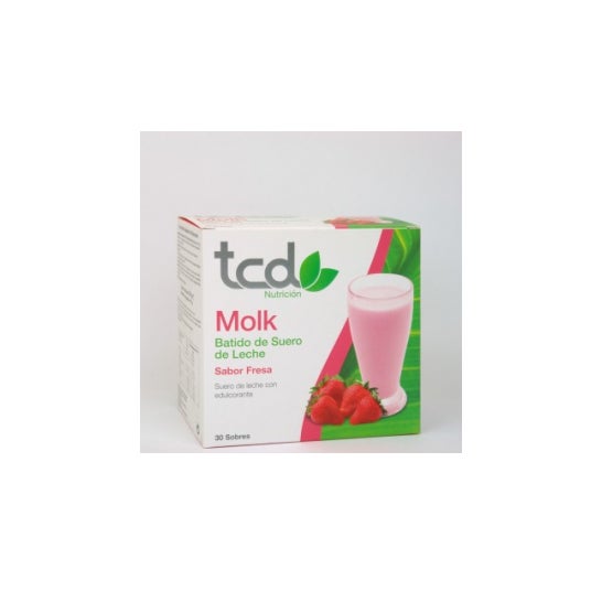 Shake de lactosérum au goût de fraise en format de sachets, qui :