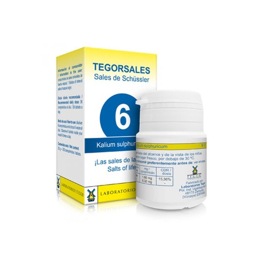 Complément alimentaire qui aide à expulser l'excès de liquides du corps. Il réduit également la quantité d'eau absorbée par le gros intestin, agissant comme un purificateur ou un détoxificateur indirect. Le n° 6 est connu sous le nom de "sel anti-toxine" et/ou de sel contre les rhumes et les inflammations. Aide à réparer la peau et les ongles endommagés. Format de 350 comprimés.