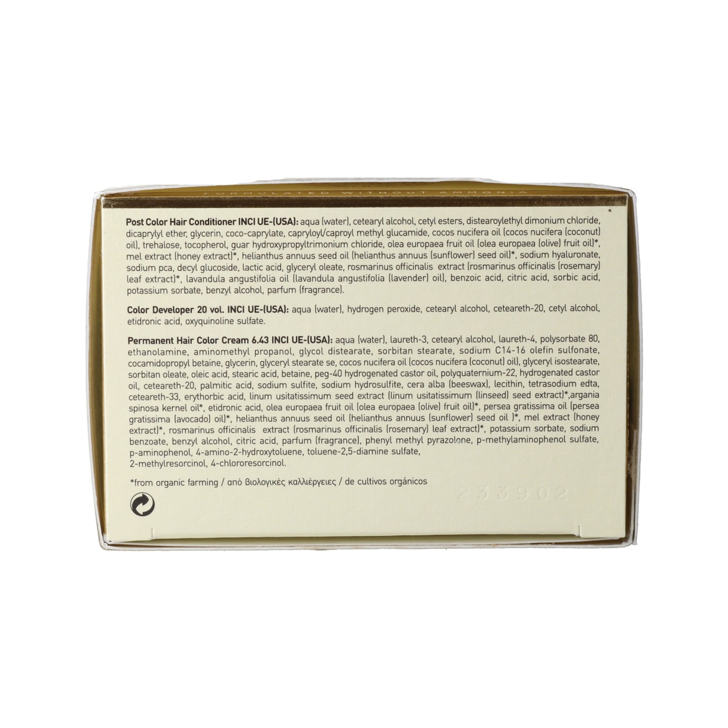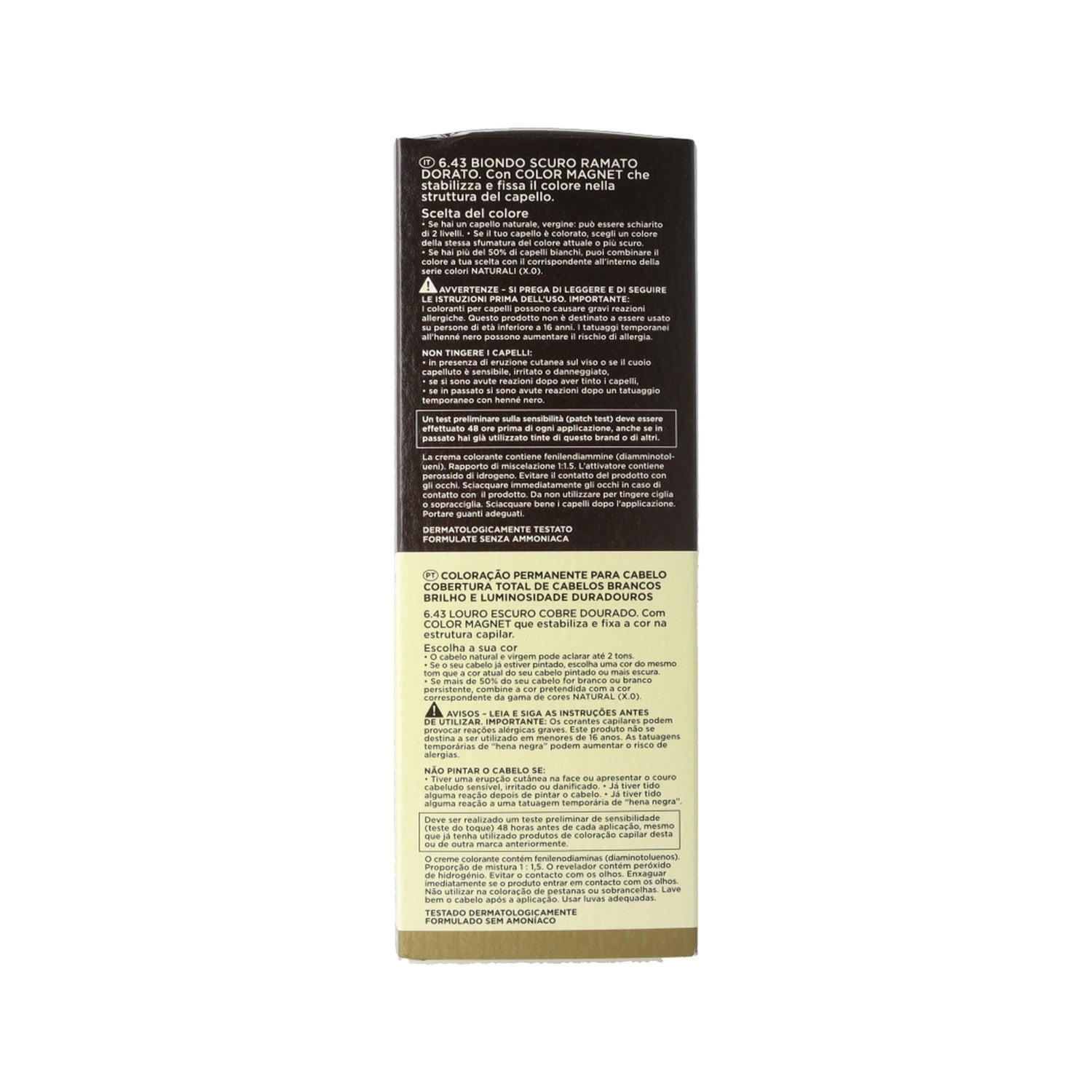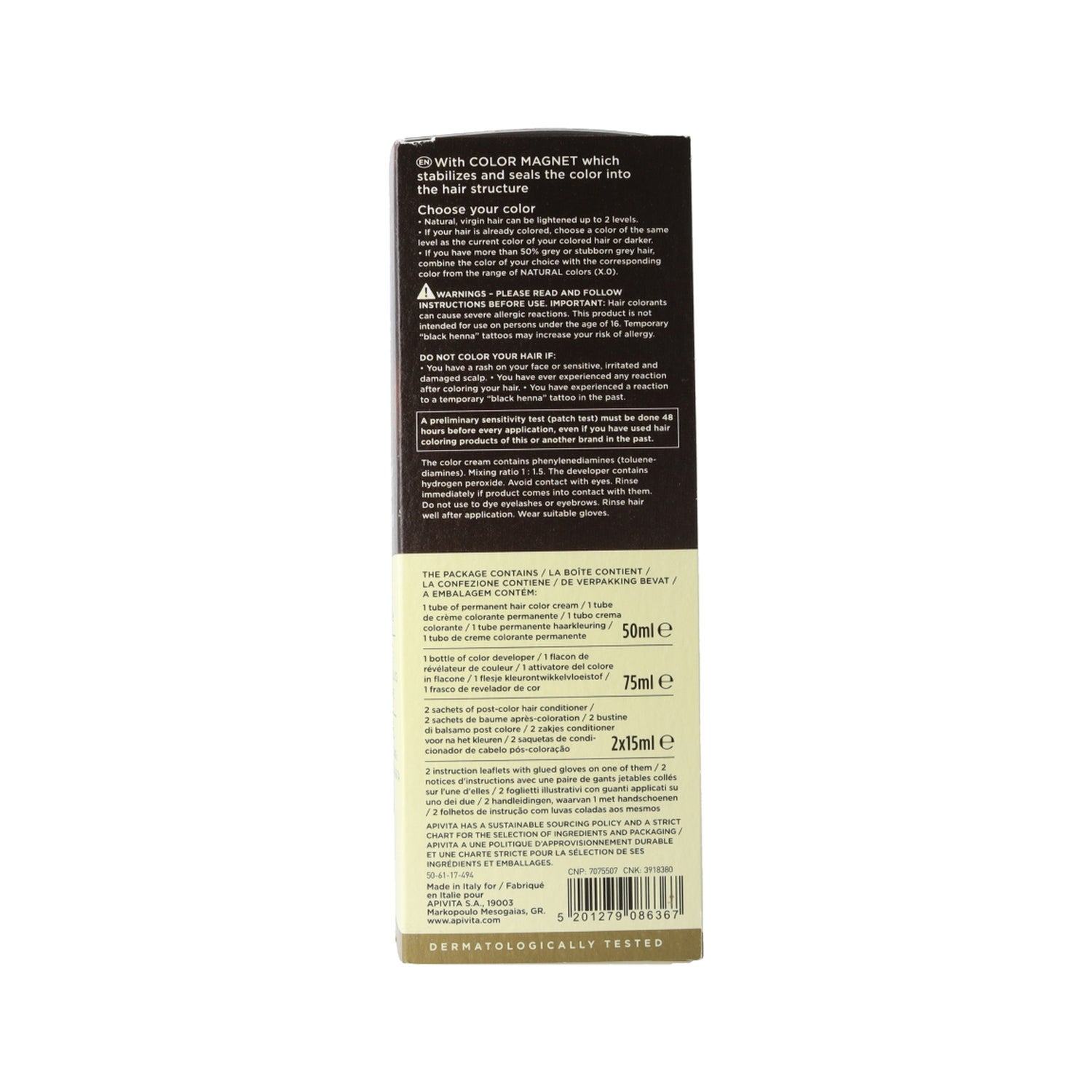 Coloration des cheveux. Cette solution permanente permet d'avoir une couverture maximale des cheveux blancs ou pour un changement de look. Sa formule contenant de l'huile d'argan, d'avocat et d'olive ainsi que de l'acide hyaluronique protège les cheveux pendant la coloration. Ne contient pas d'ammoniaque, d'alcool, de parabènes, d'huiles minérales, de silicones ou de SLS.