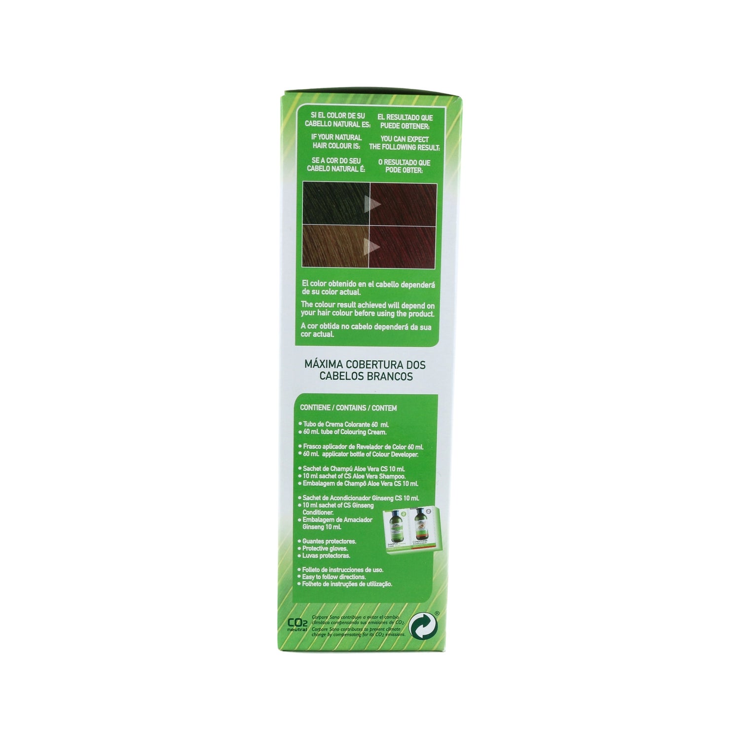 Le kit comprend un tube de 60 ml de crème colorante, un flacon de 60 ml d'applicateur de révélateur de couleur, des sachets de 10 ml de shampooing Aloe Vera CS et d'après-shampooing Ginseng CS, des gants de protection et un mode d'emploi détaillé.