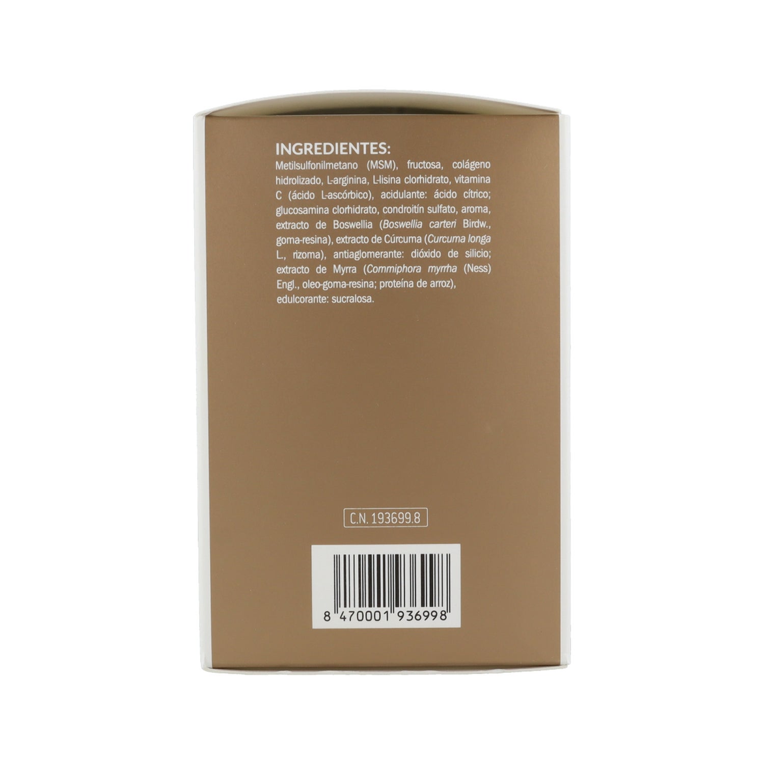 Il est composé de méthylsulfonylméthane, de collagène hydrolysé, de sulfate de chondroïtine, de L-arginine, de L-lysine, de vitamine C et d'extraits de plantes pour apporter tous les nutriments nécessaires à une bonne fonctionnalité et à la récupération.