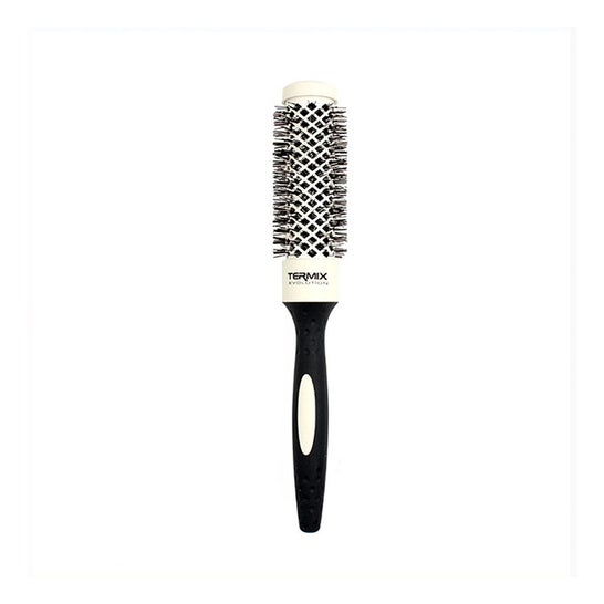Brosse ronde de 28 mm avec un manche ergonomique et fibres de haute résistance qui aident à répartir correctement la chaleur. Aide à protéger les cheveux pendant le coiffage et les traitements thermiques, facilitant la prise des cheveux.